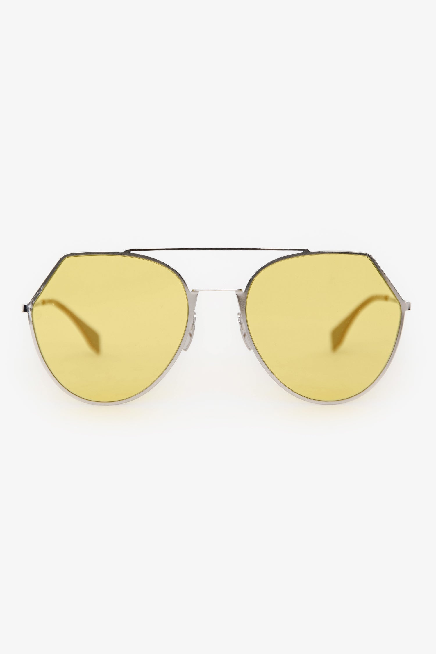 Refresh availabilityFendi Silver Tone Metal Yellow Shade Sunglasses. Adjustable nose pads.