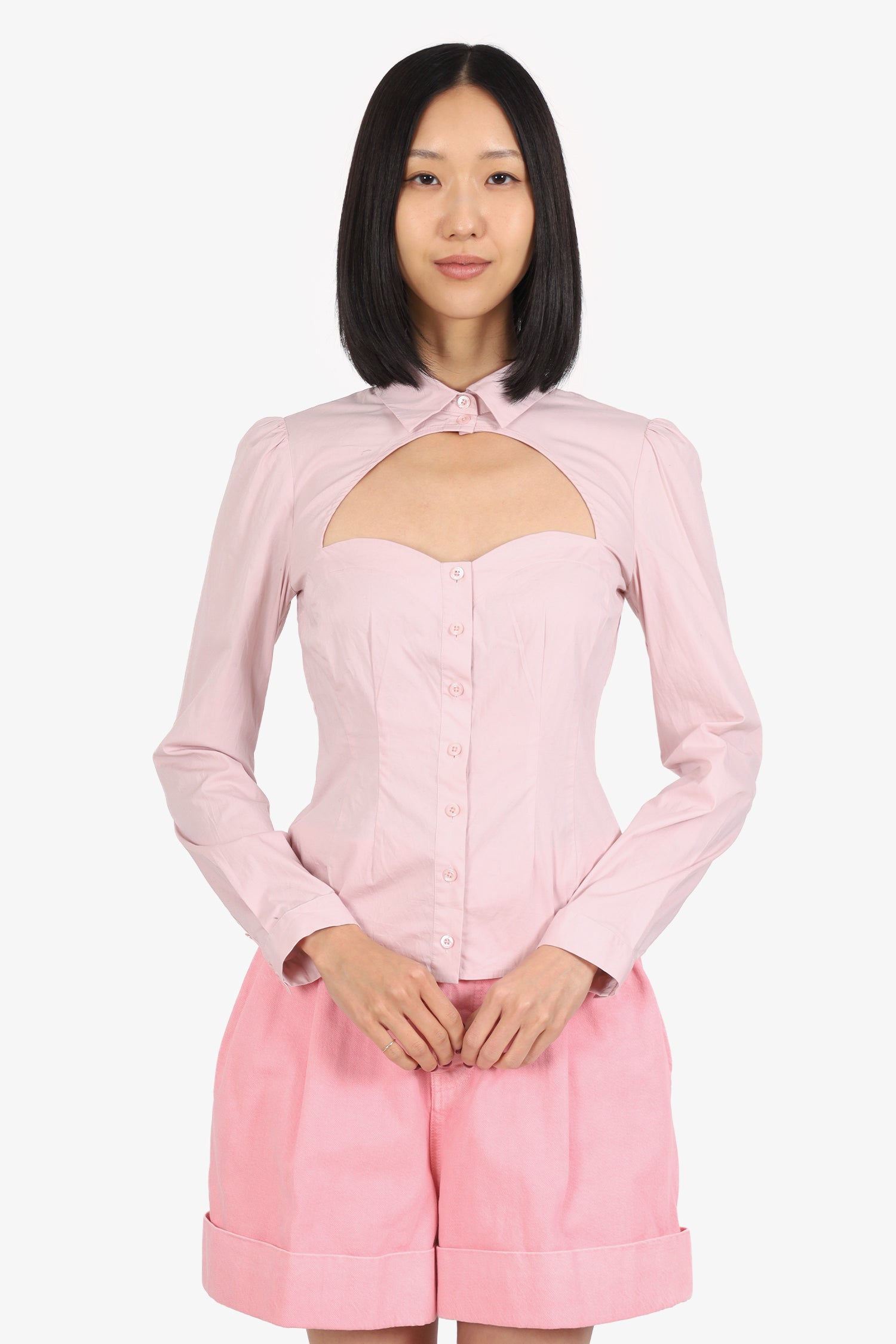 Refresh availabilityFleur Du Mal Pink Sweetheart Neck Shirt. Pull-on. Collared neckline. Front button-up closure. Sleeve cuffs with button-up closure. Tonal stitching.