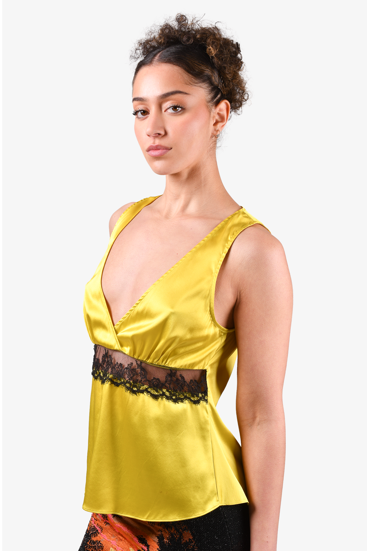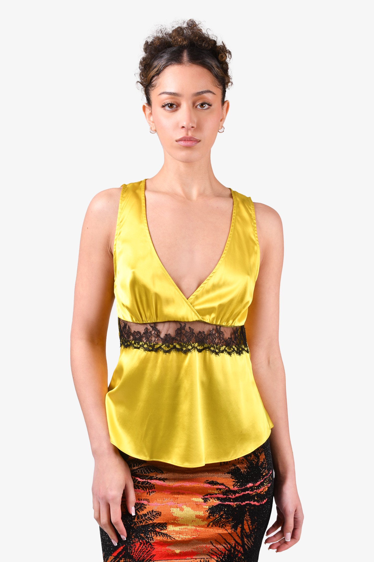 Fleur du Mal Yellow Silk/Lace Tank Top Size M