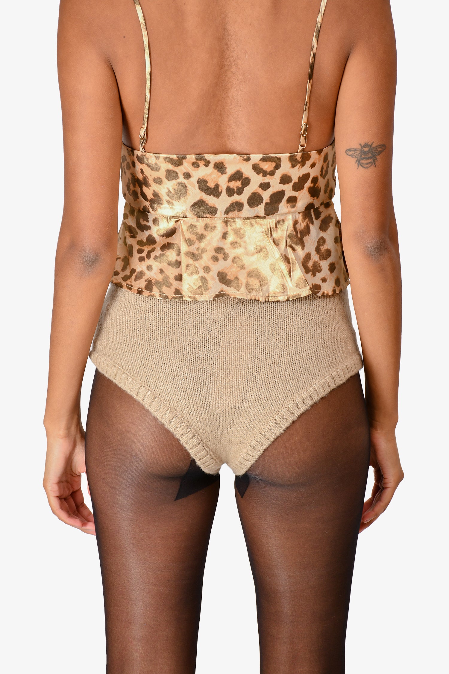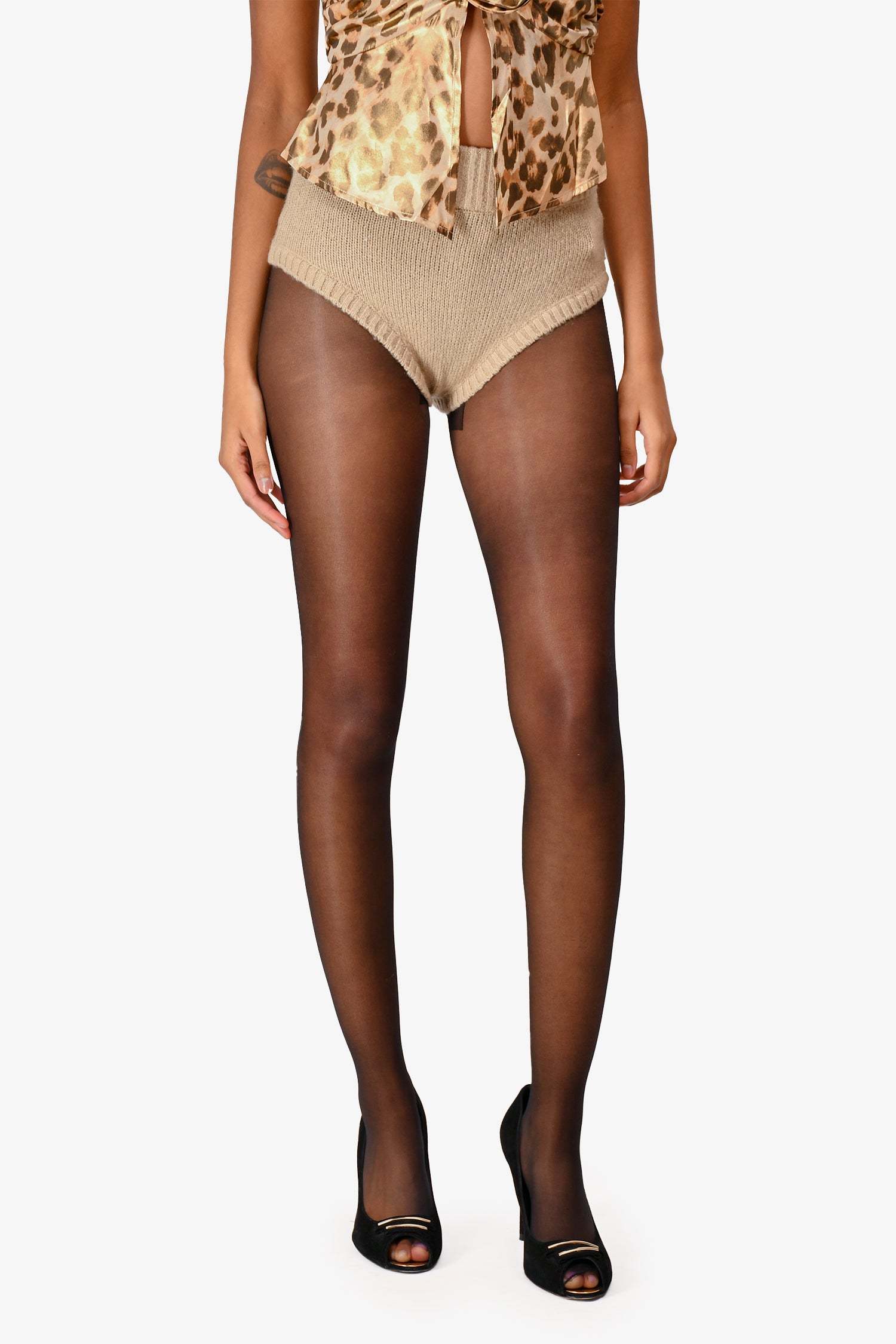 Refresh availabilityFor Love & Lemons Grey Knit Ultra-Micro Short. Ribbed trimming. Elasticated covered knit waistband. Tonal stitching.