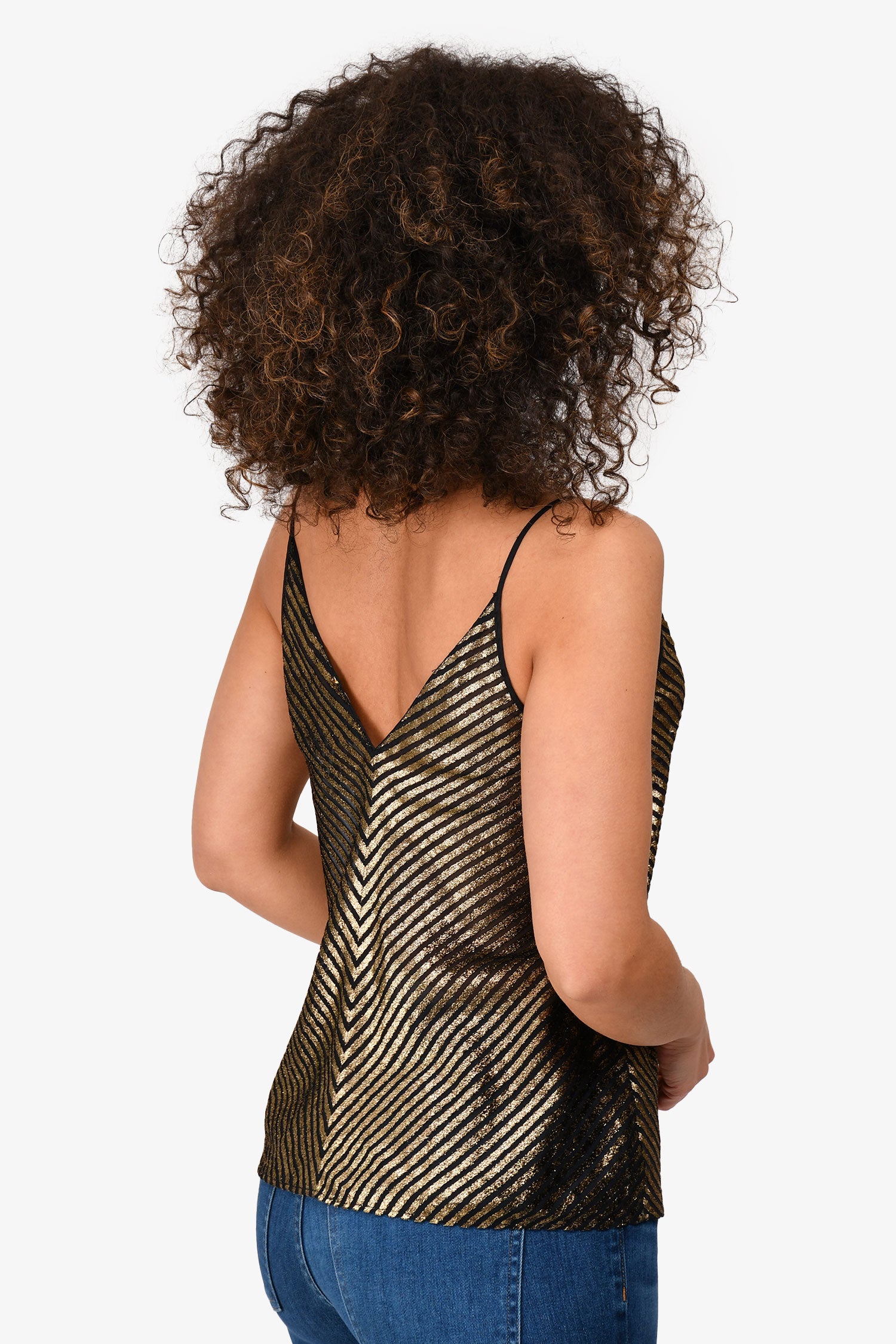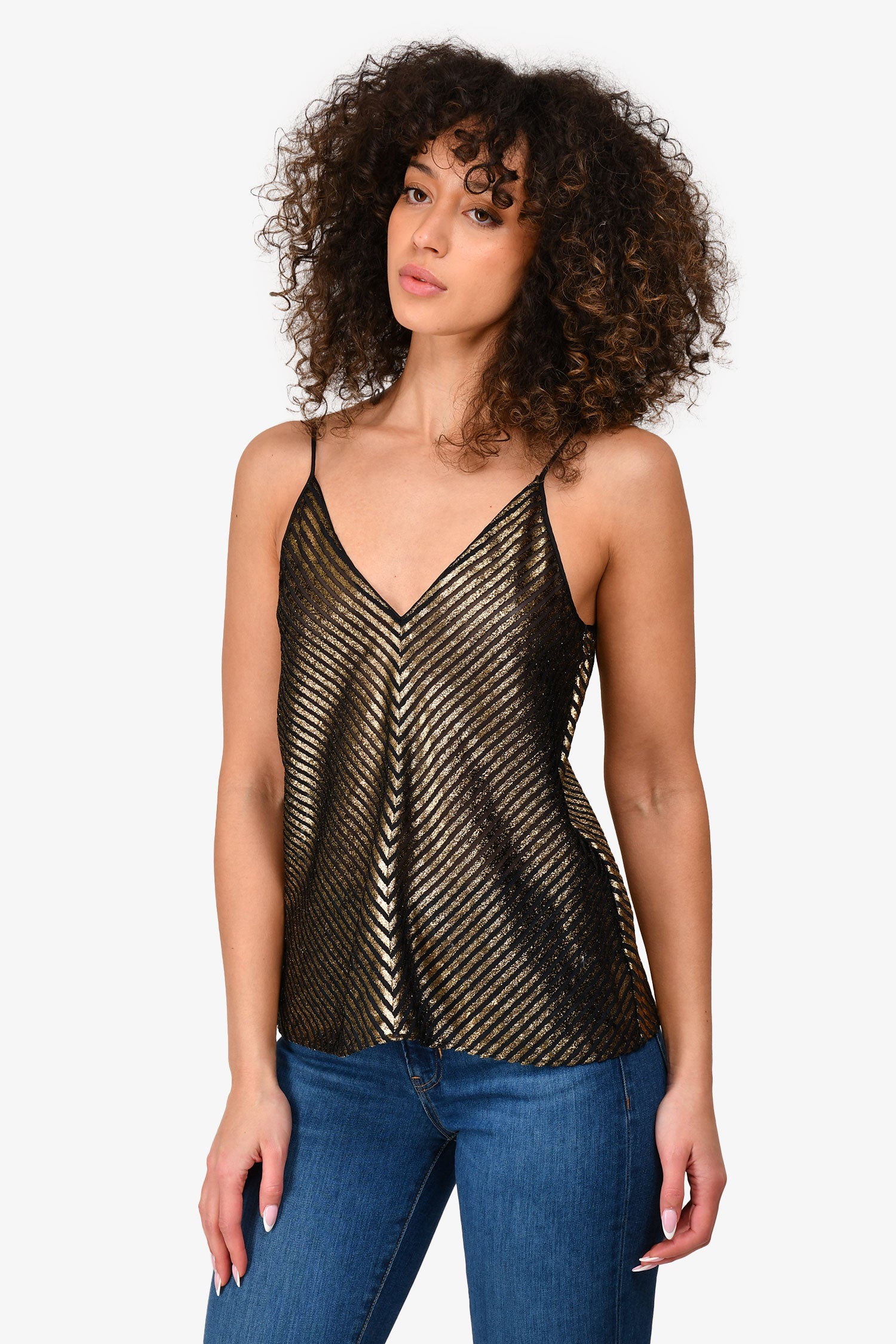 Refresh availabilityForte Forte Black/Gold Striped Tank Top. Spaghetti straps. Tonal stitching.