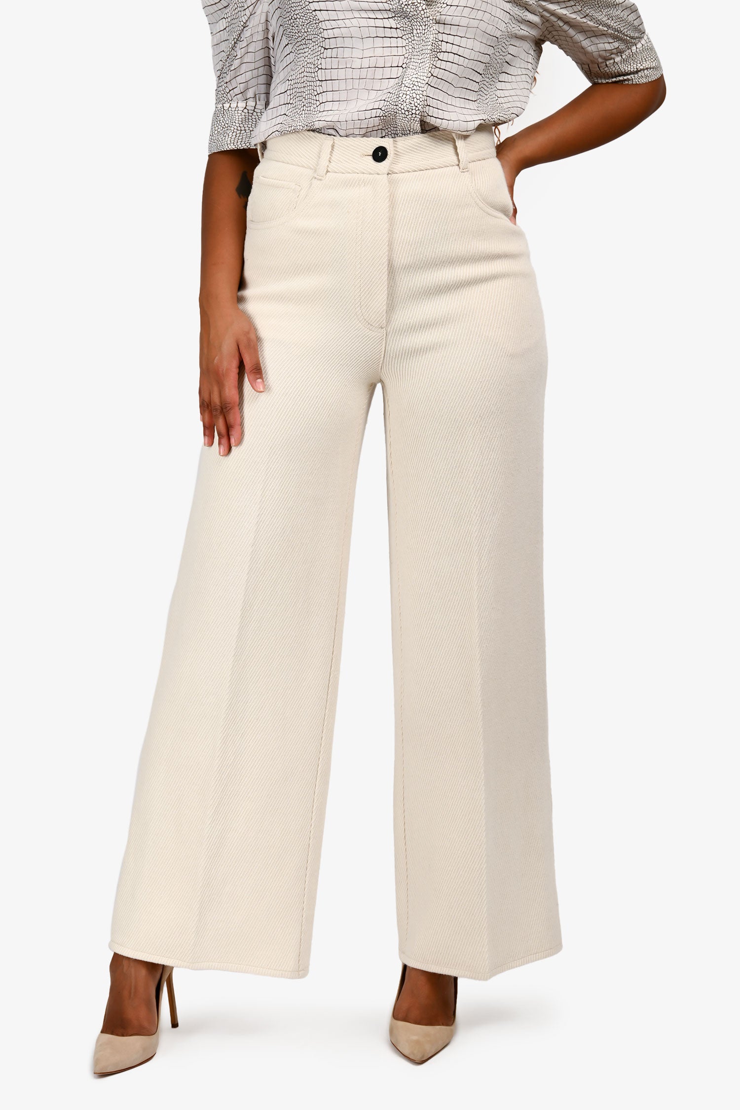 Refresh availabilityForte Forte Cream Cotton/Wool Blend Chevron Wide Leg Pants. Pull-on. Hidden zipper and button closure in the front. Belt loops at the waist. 3 exterior slip pockets. Tonal stitching.