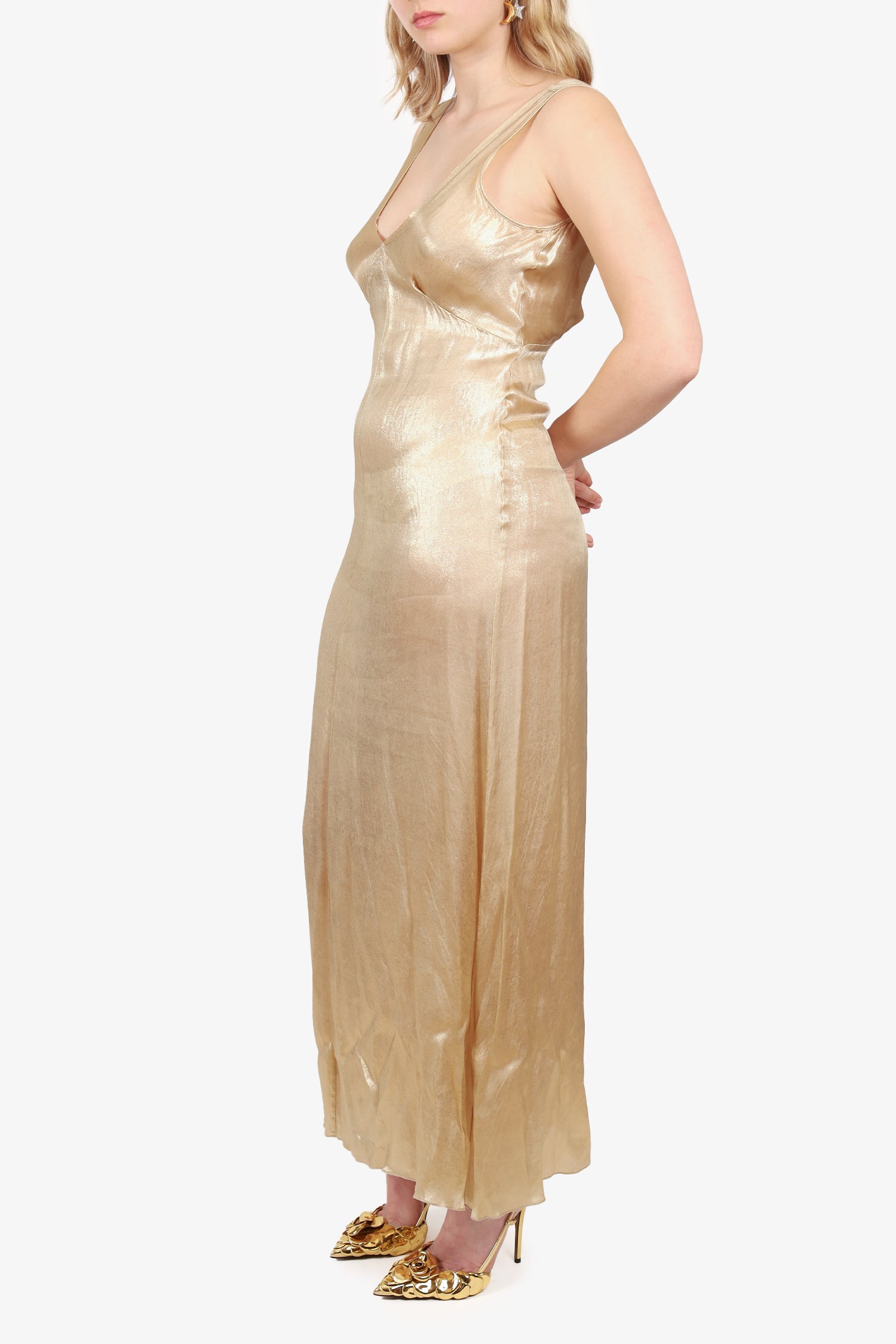 Forte Forte Gold Sleeveless Maxi Dress Deep V neckline. Tonal stitching.