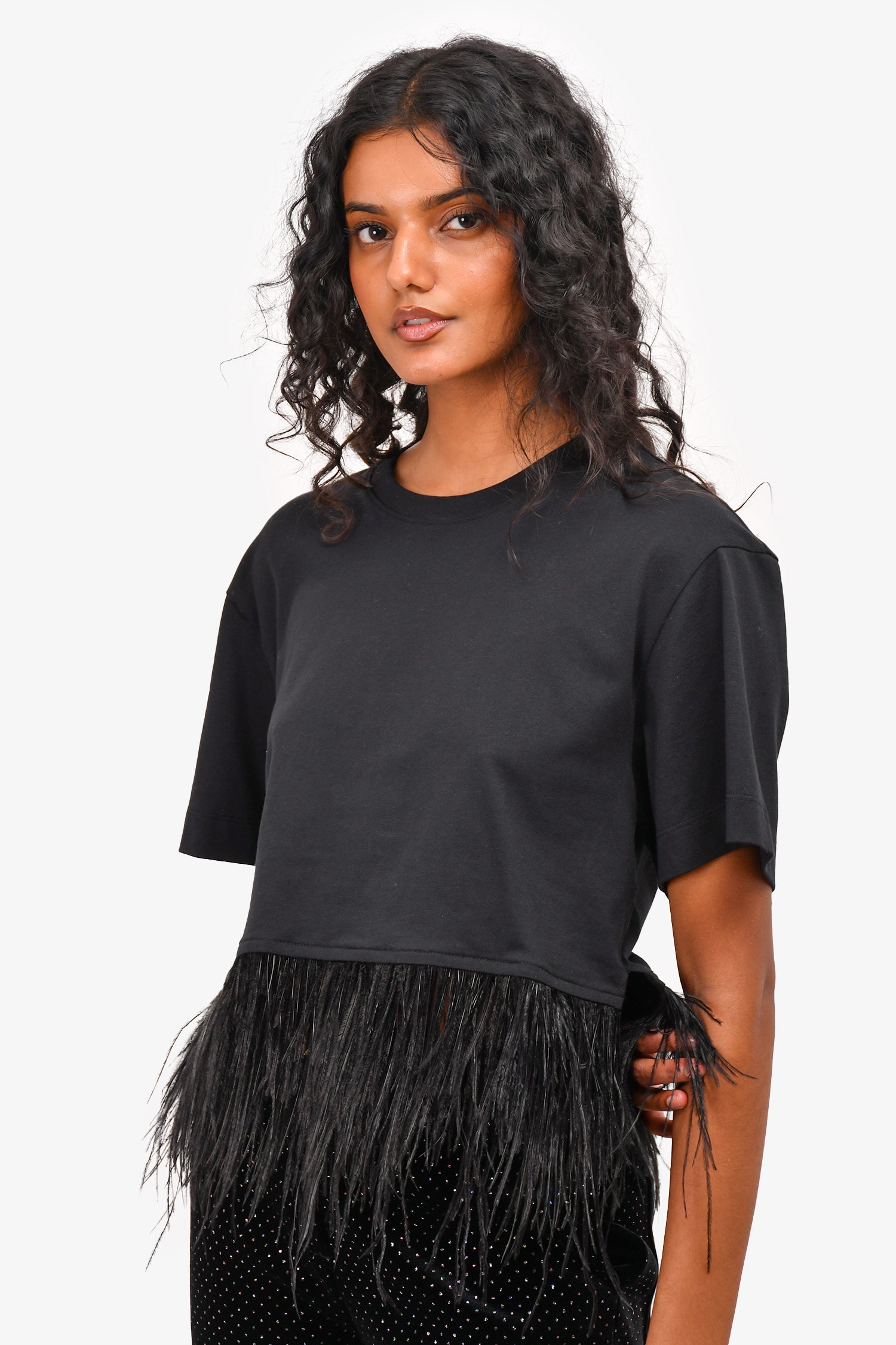 Refresh availabilityFrame Black Feather Hemmed Short Sleeve Top.