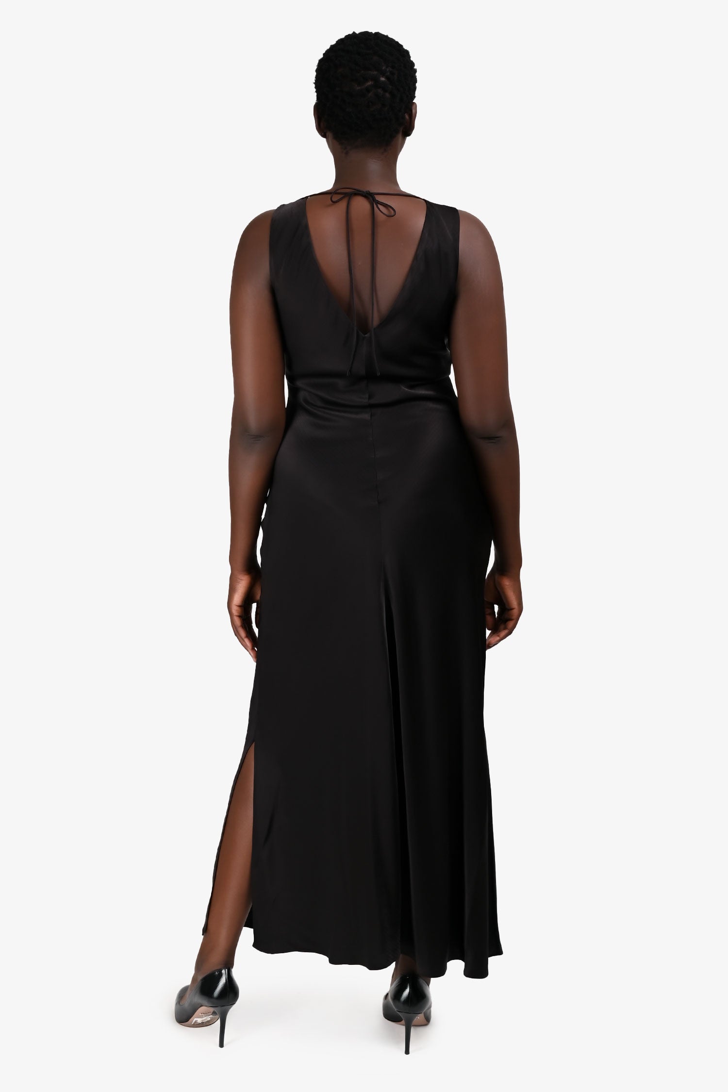 Frame Black Satin Lace Front Midi Slip Dress Size M