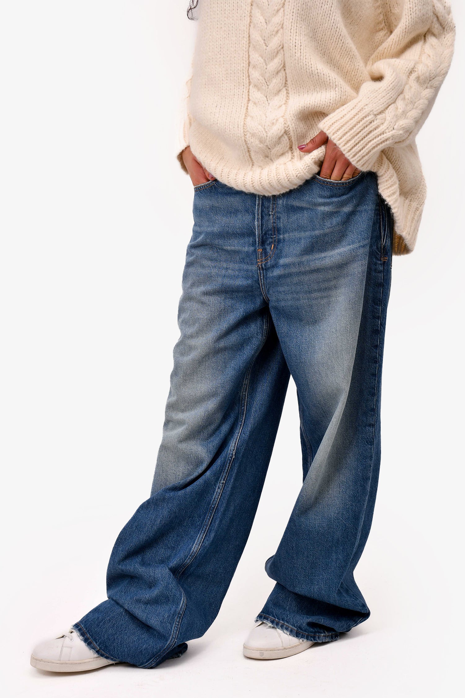 Refresh availabilityFrame Blue Denim 'Collette' Wide Leg Jeans. Front button-up closure. Front and rear pockets. Waist belt loops.