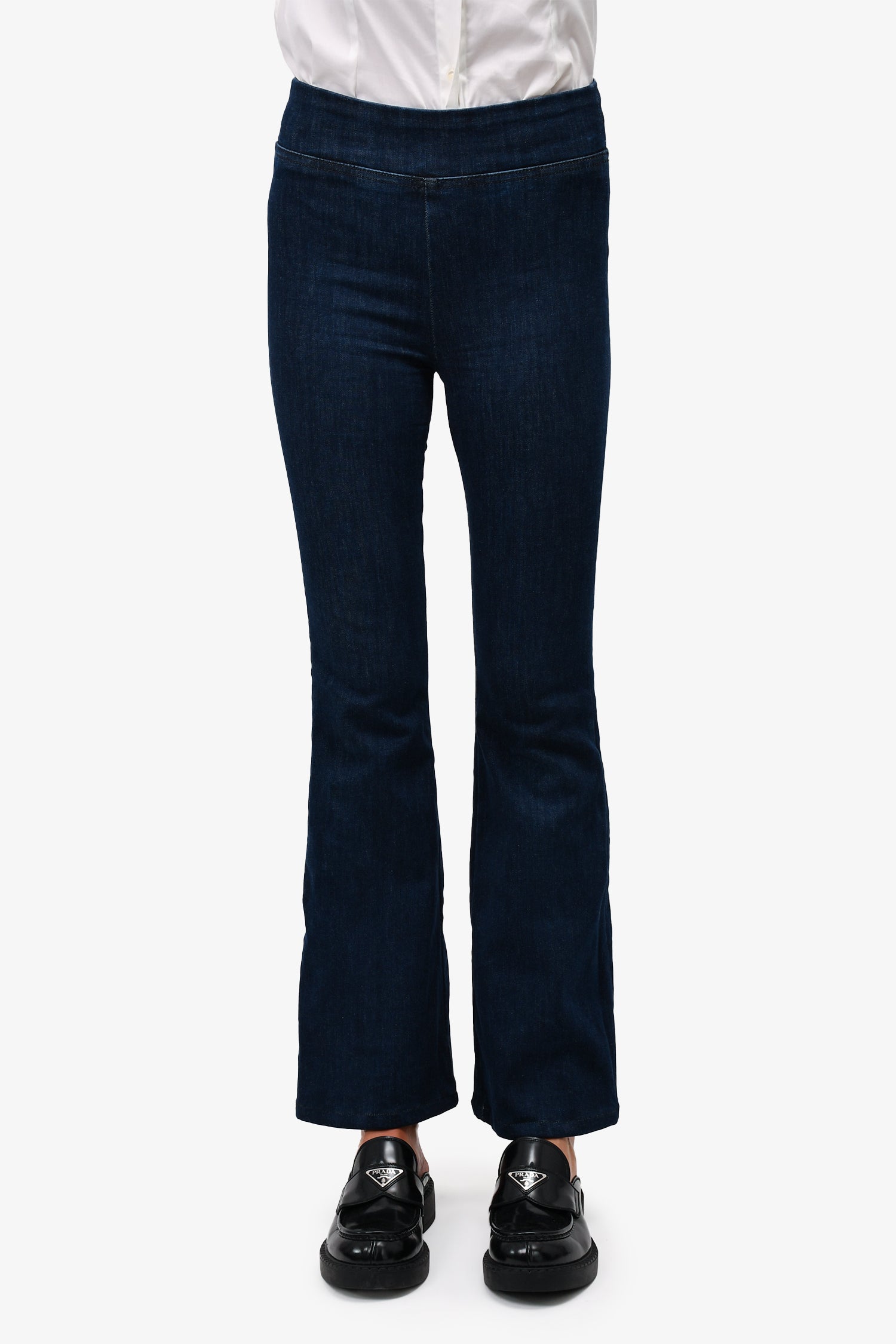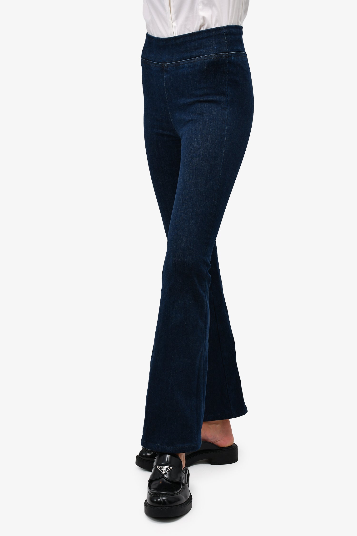 Refresh availabilityFrame Blue Denim Elasticized Waistband Flare Jeans. Slip on. Tonal stitching.