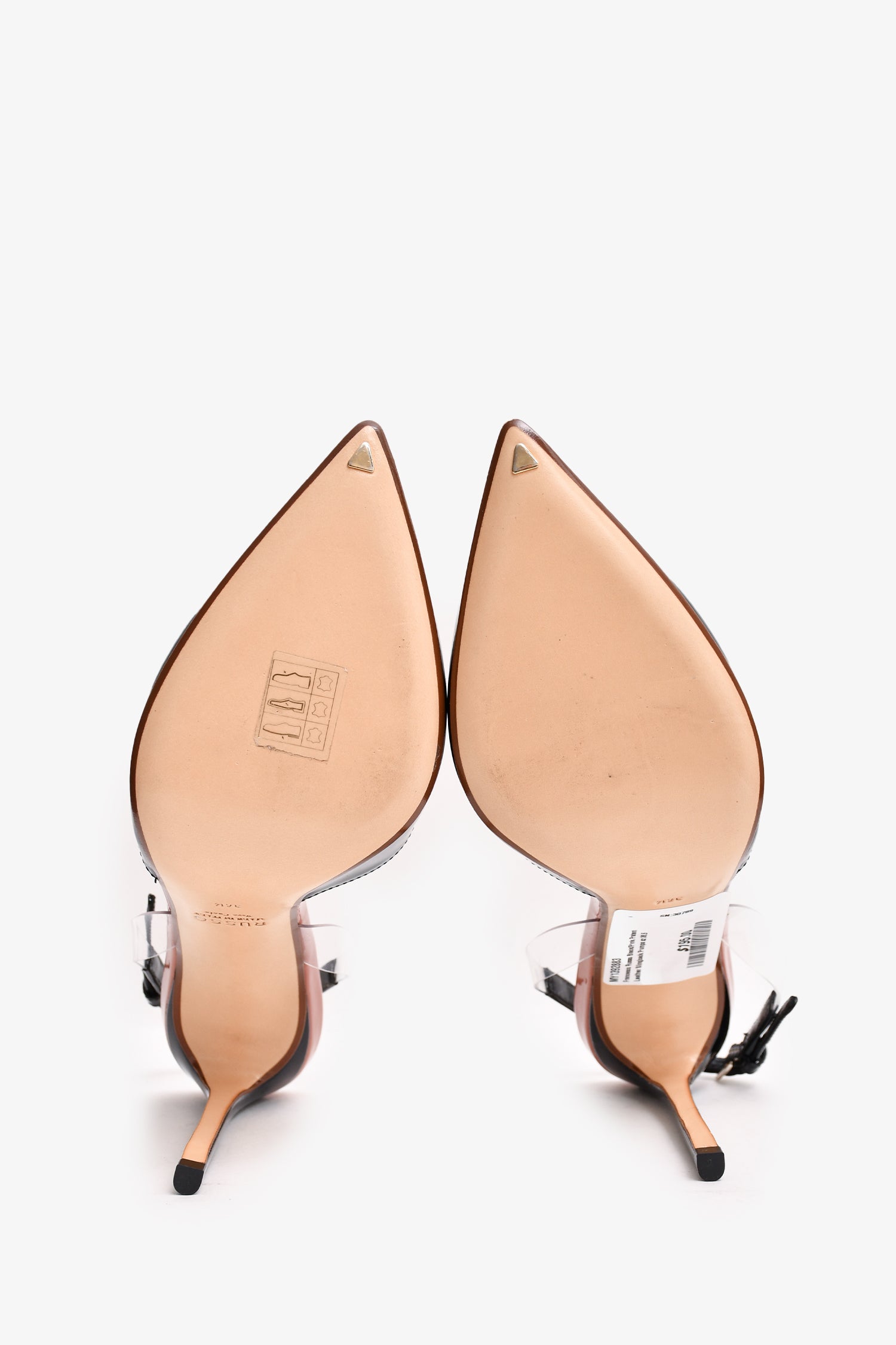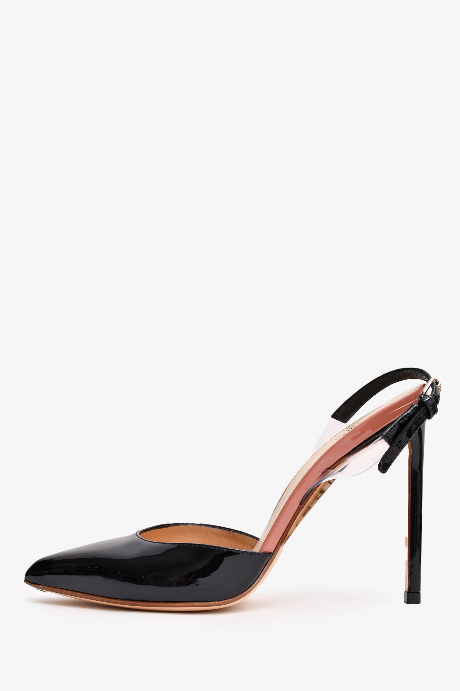 Refresh availabilityFrancesco Russo Black/Pink Patent Leather Slingback Pumps. Pointed toe. Ankle strap with buckle closure. Glossy finish.