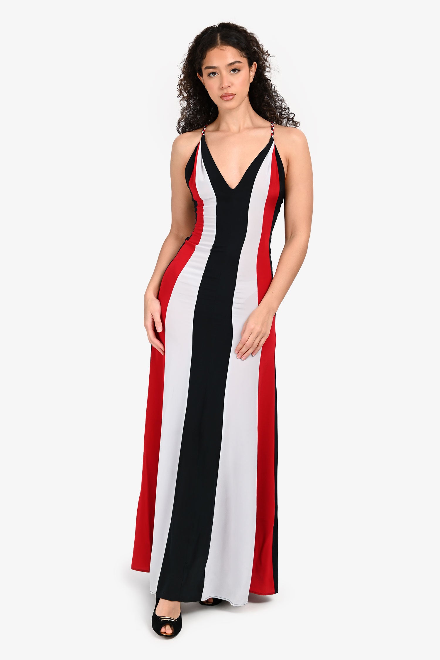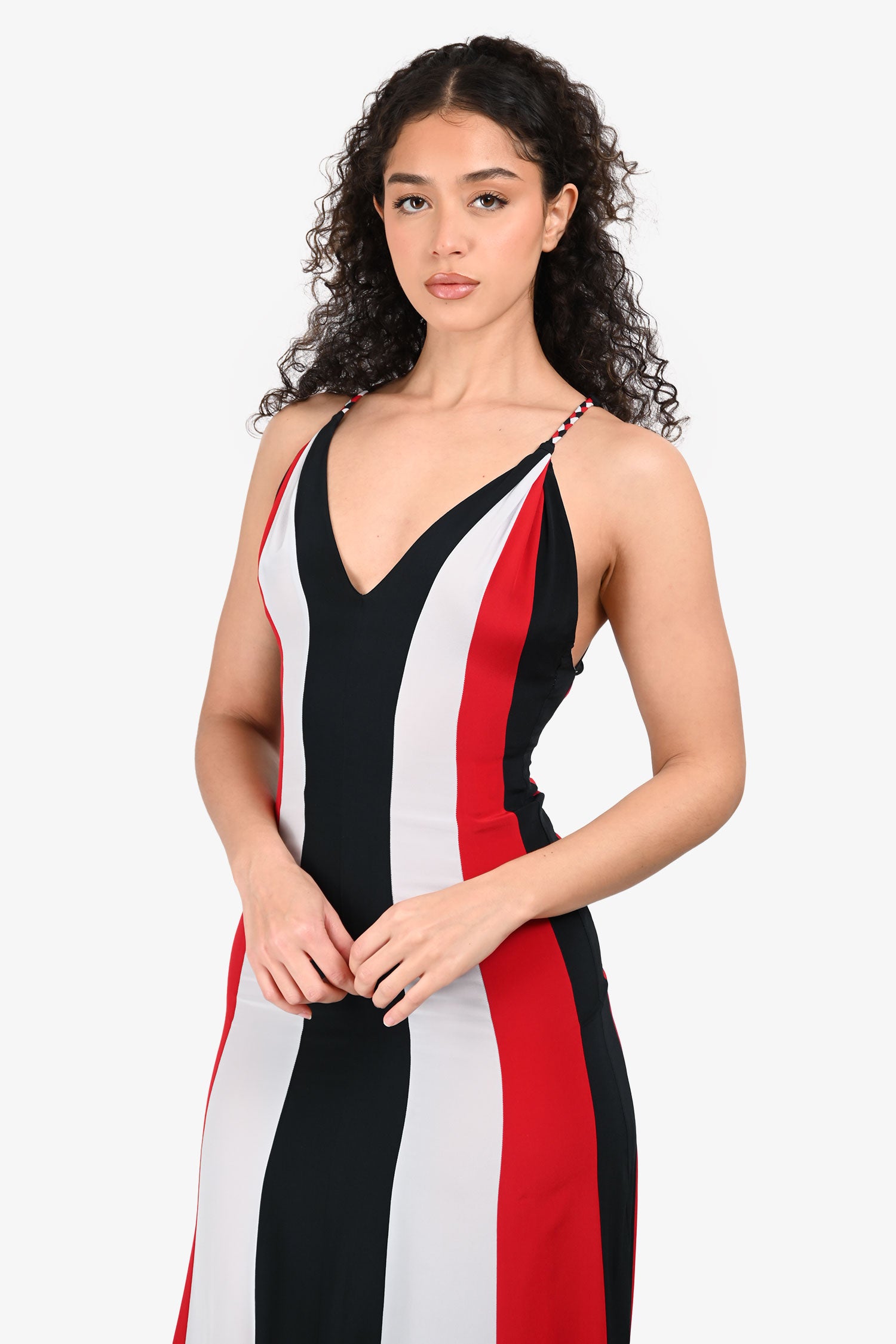 Refresh availabilityGabriela Hearst Grey/Black/Red Striped Maxi Dress. Slip-on. V-neckline. Sleeveless. Back zip-up closure. Tonal stitching.