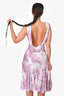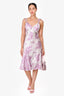 Galliano White/Purple Lace Printed Sleeveless Midi Dress Size 4