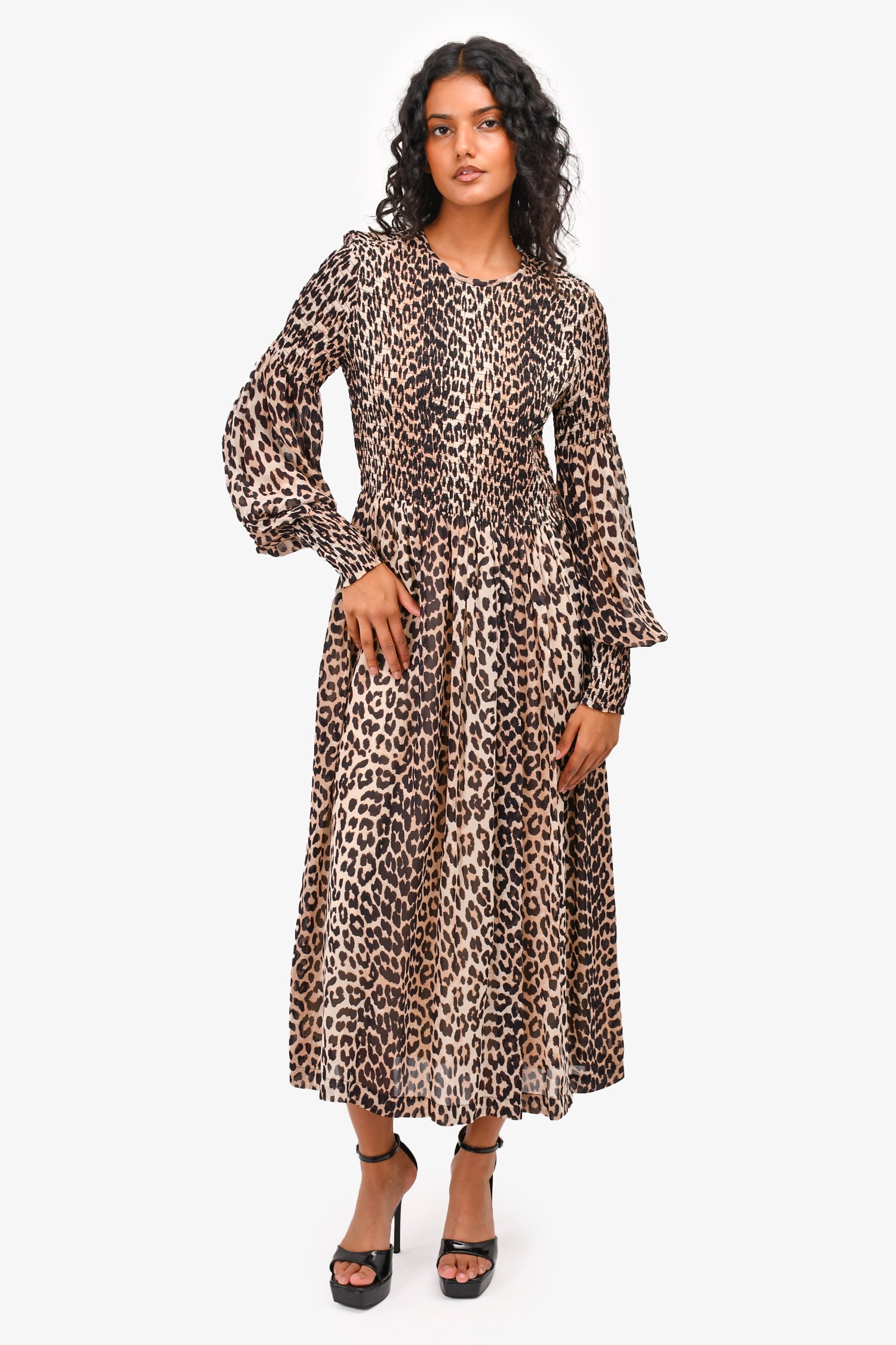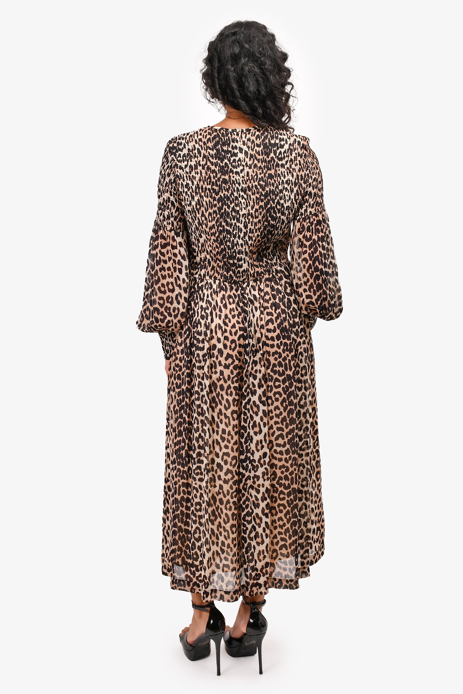 Refresh availabilityGanni Beige/Black Leopard Print Ruched Long Sleeve Dress.