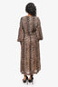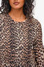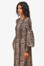 Ganni Beige/Black Leopard Print Ruched Long Sleeve Dress Size 38