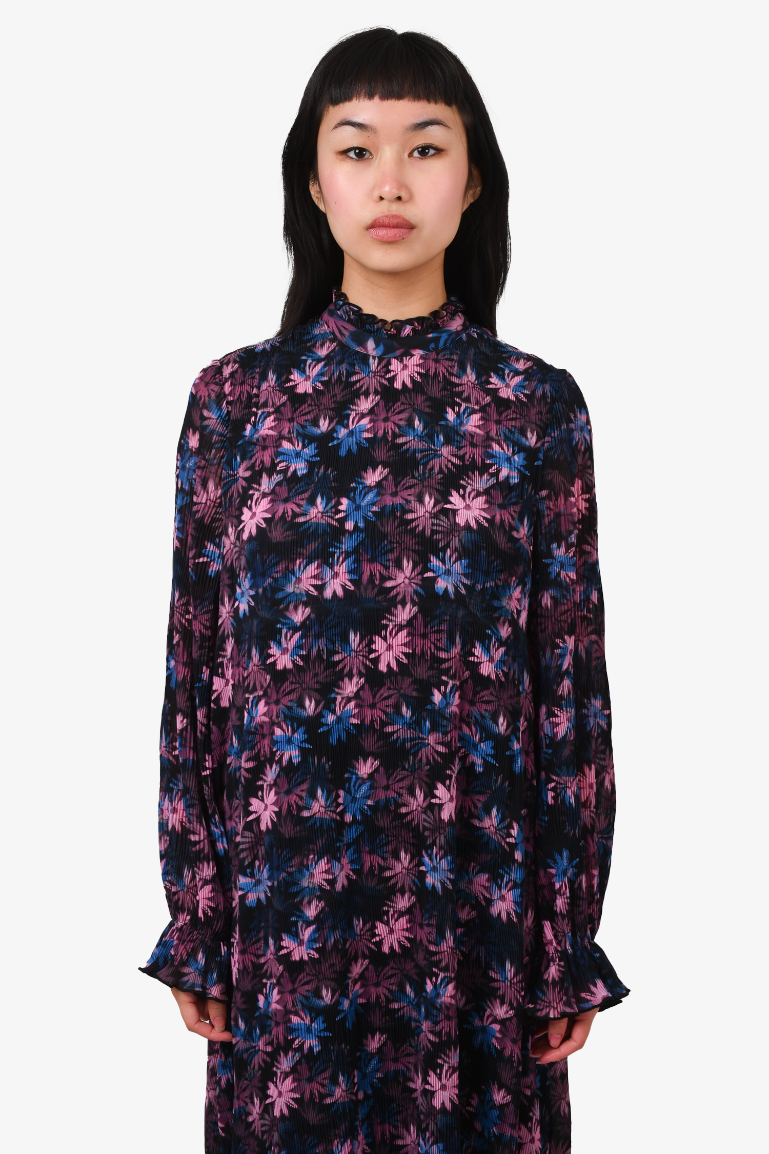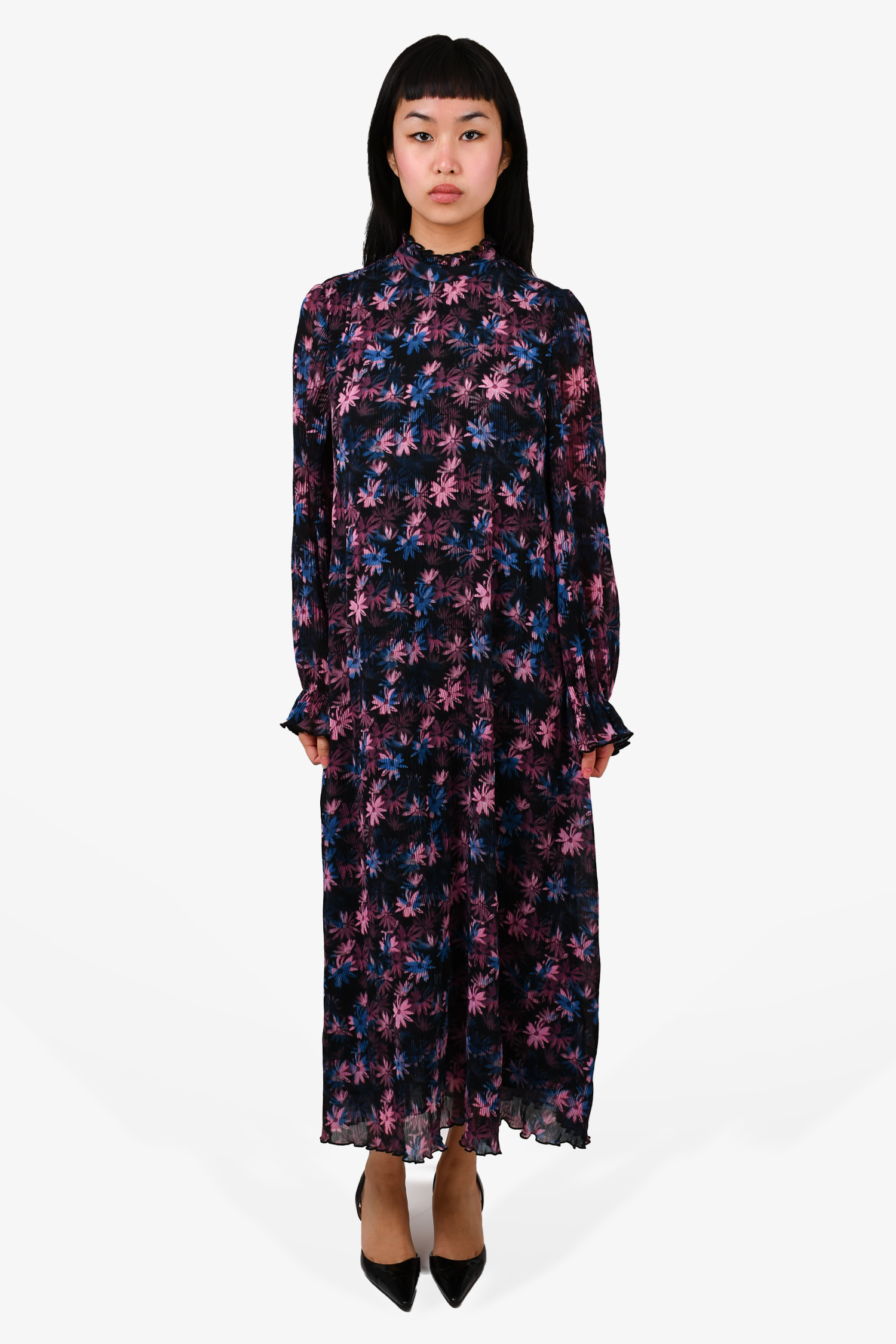 Refresh availabilityGanni Black Floral Maxi Chiffon Pleated Dress. Single front button closure on the neckline. Lined. Tonal stitching.