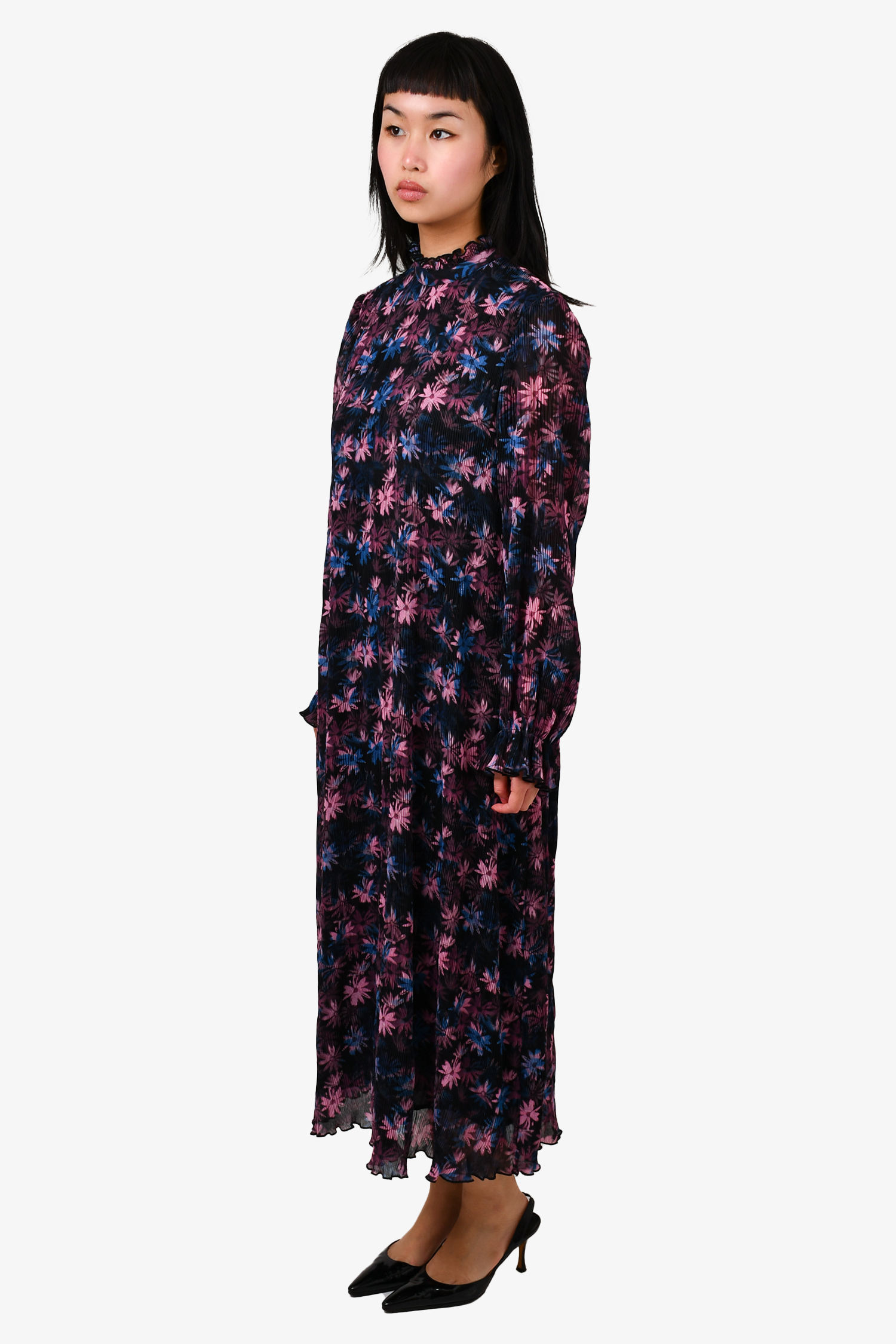 Ganni Black Floral Maxi Chiffon Pleated Dress Size 36