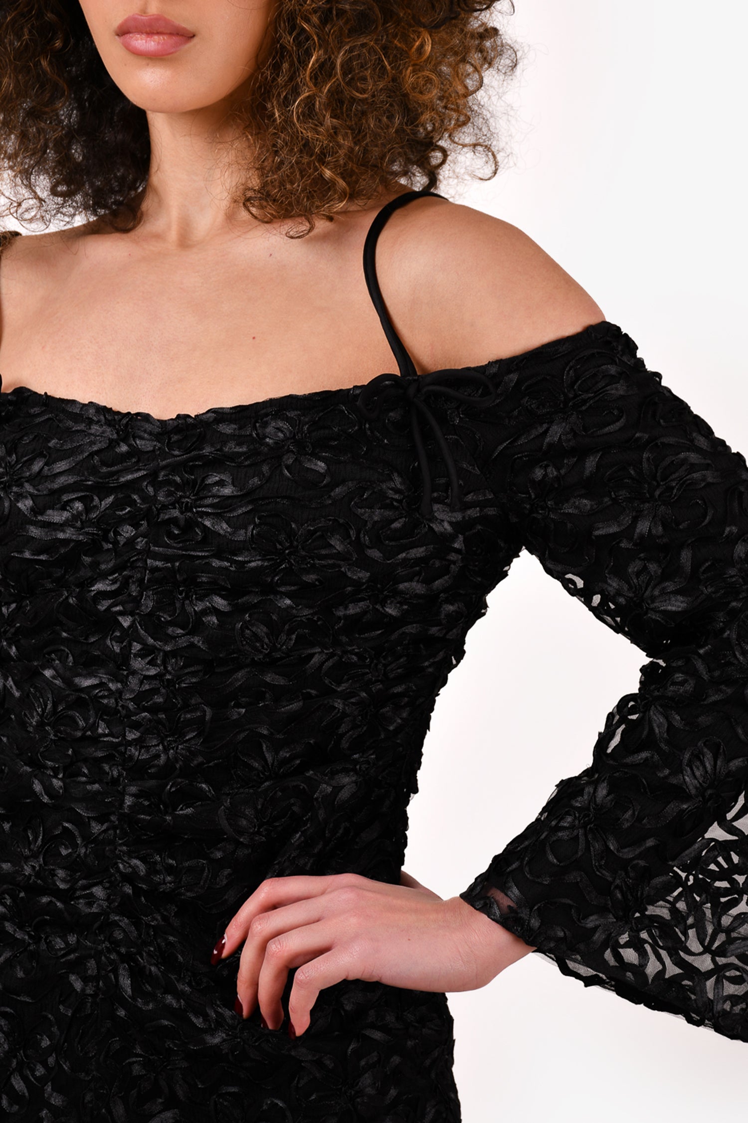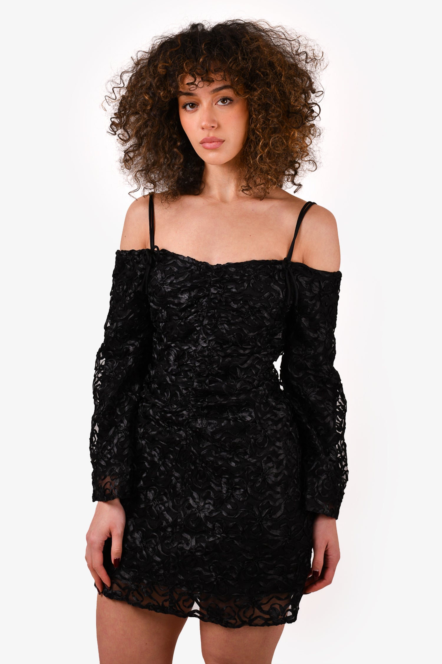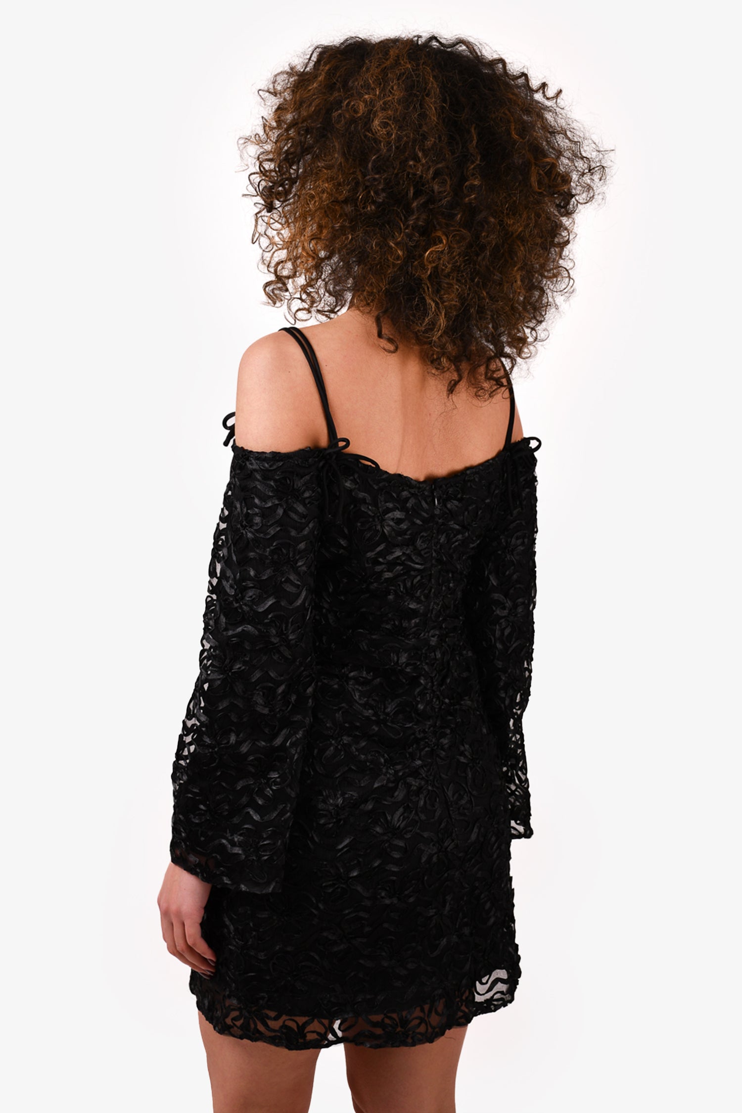 Refresh availabilityGanni Black Floral Overlay Off-The-Shoulder Dress. Rear zip closure. Lined. Tonal stitching.