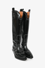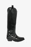 Ganni Black Leather Contrast Stitched Cowboy Boots Size 38