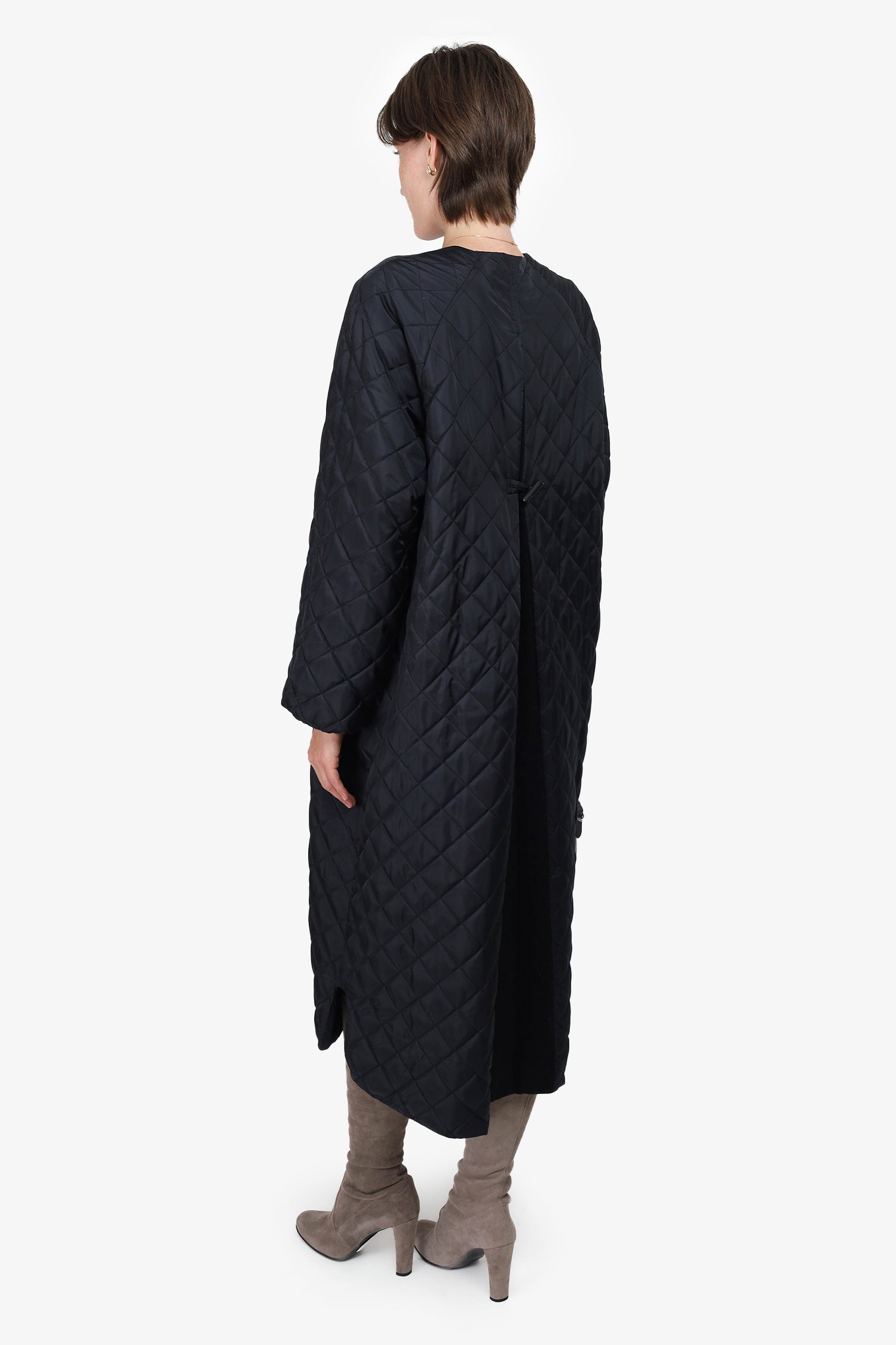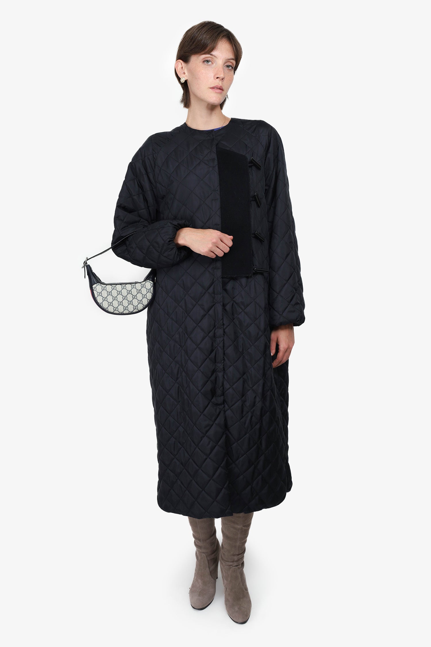 Refresh availabilityGanni Black Long Puffer Coat. Round neck. Snap button closure. Side splits on hem. Lined. Tonal stitching.