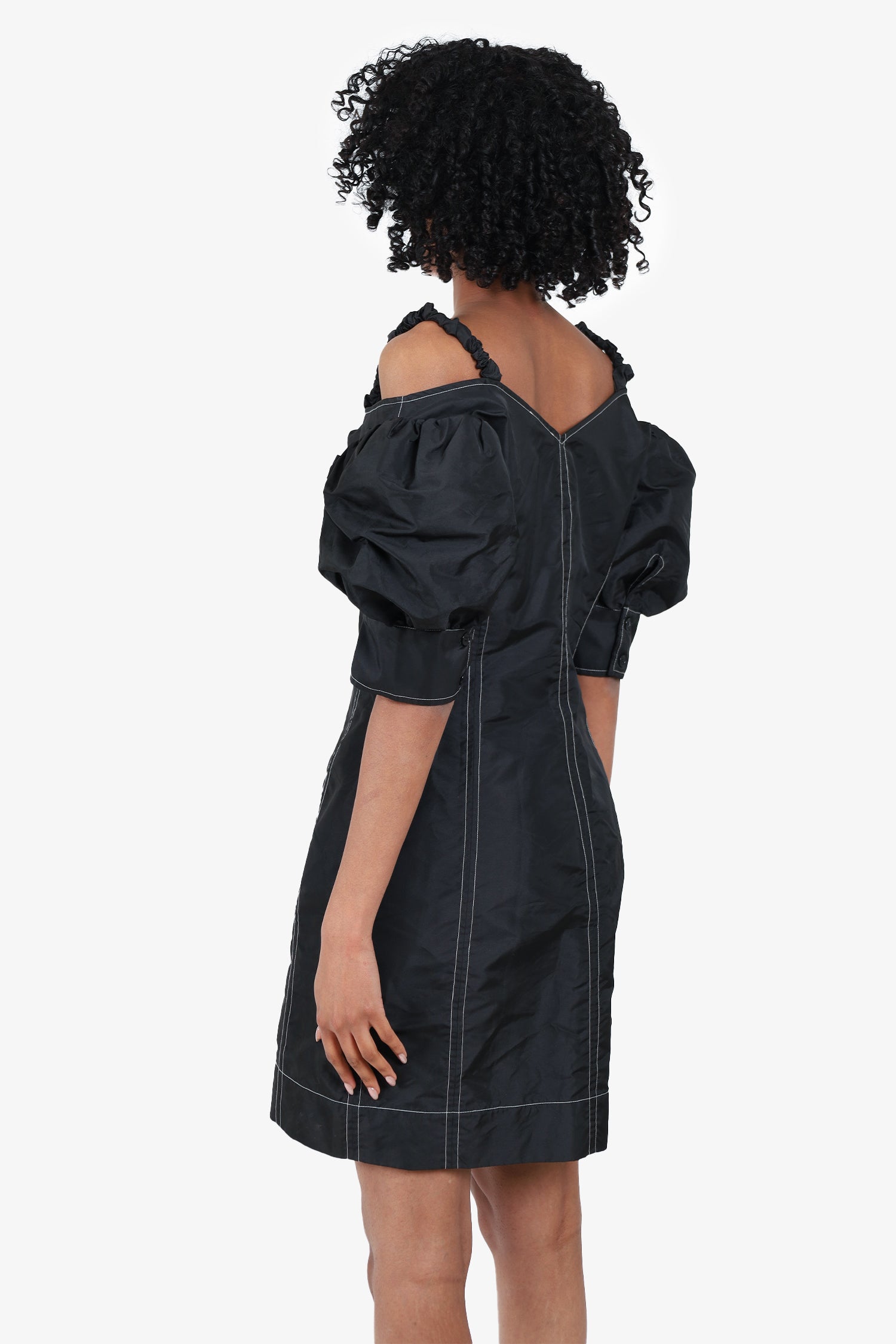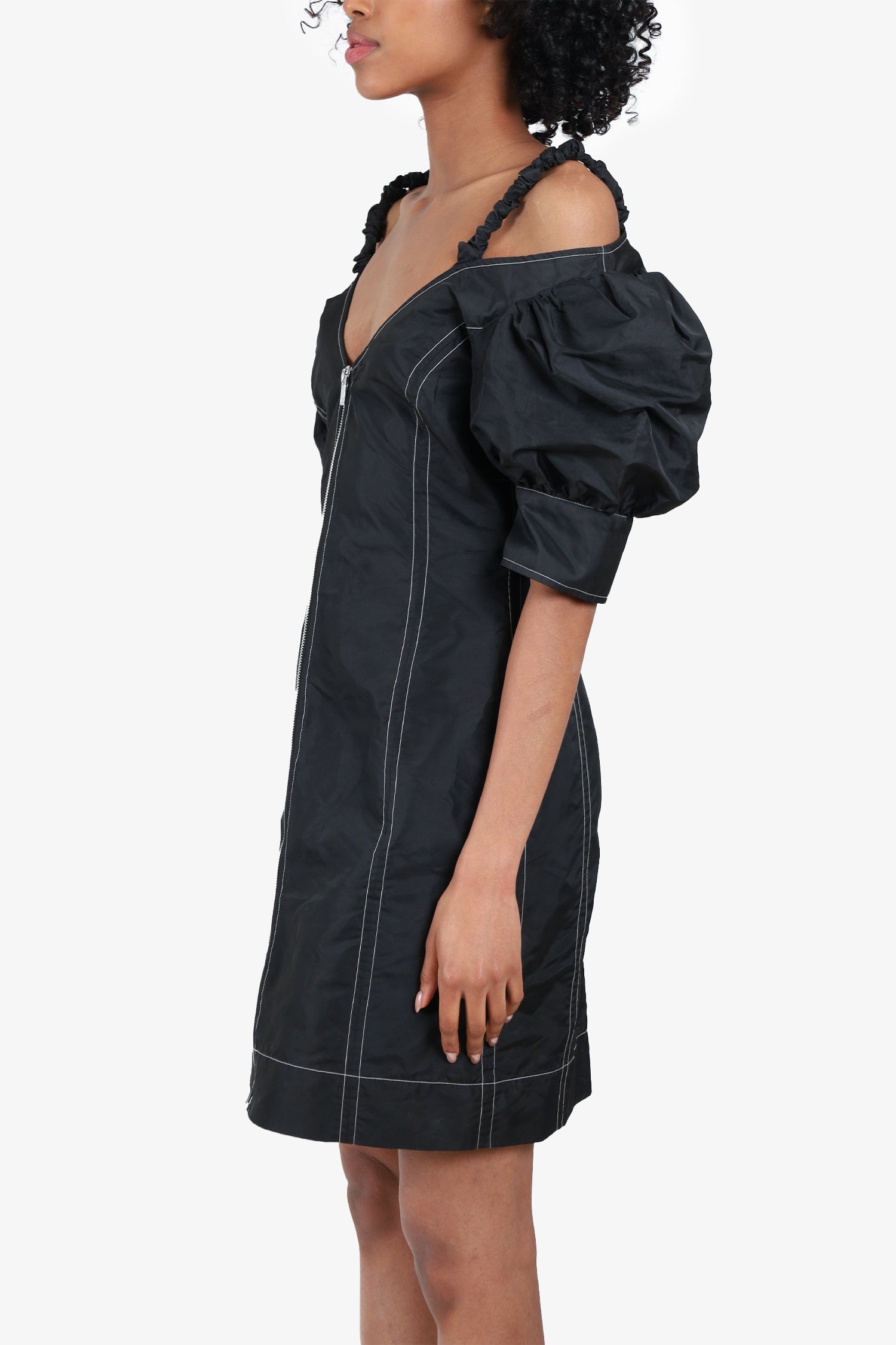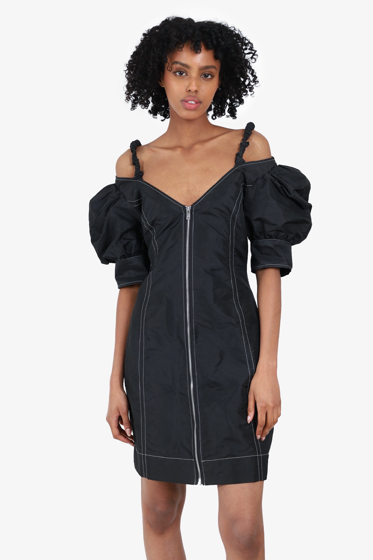 Refresh availabilityGanni Black Off The Shoulder Zip-Down Mini Dress.Front zip-up closure. Puff sleeves. Tonal stitching.