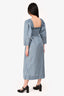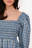 Ganni Blue Cotton Plaid Ruched Dress Size 34