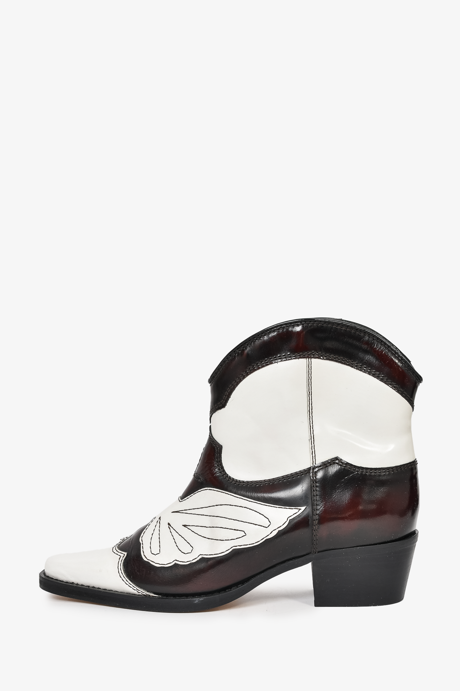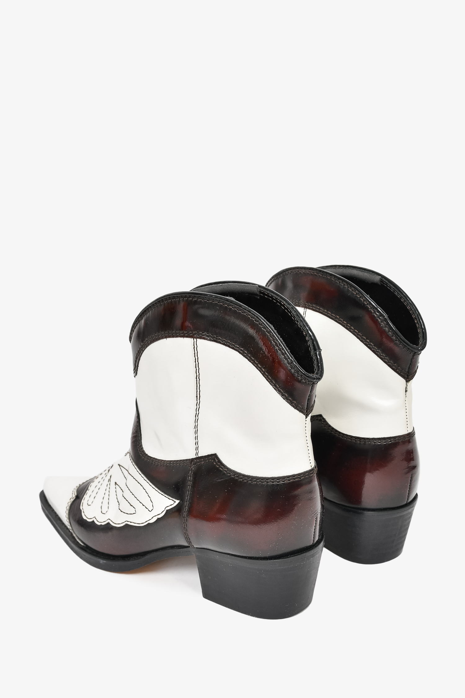 Ganni Brown/White Leather Western Cowboy Boots sz 39