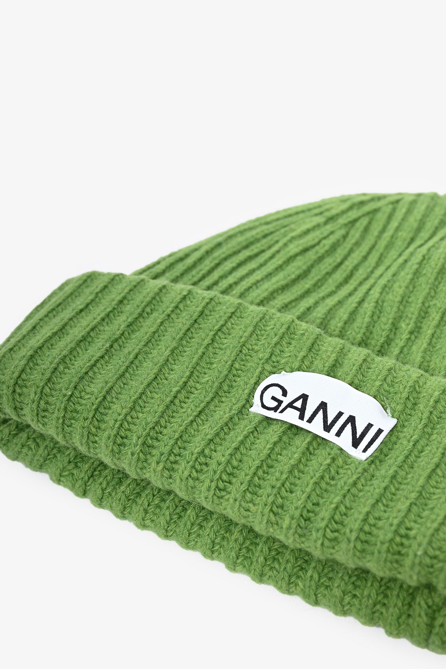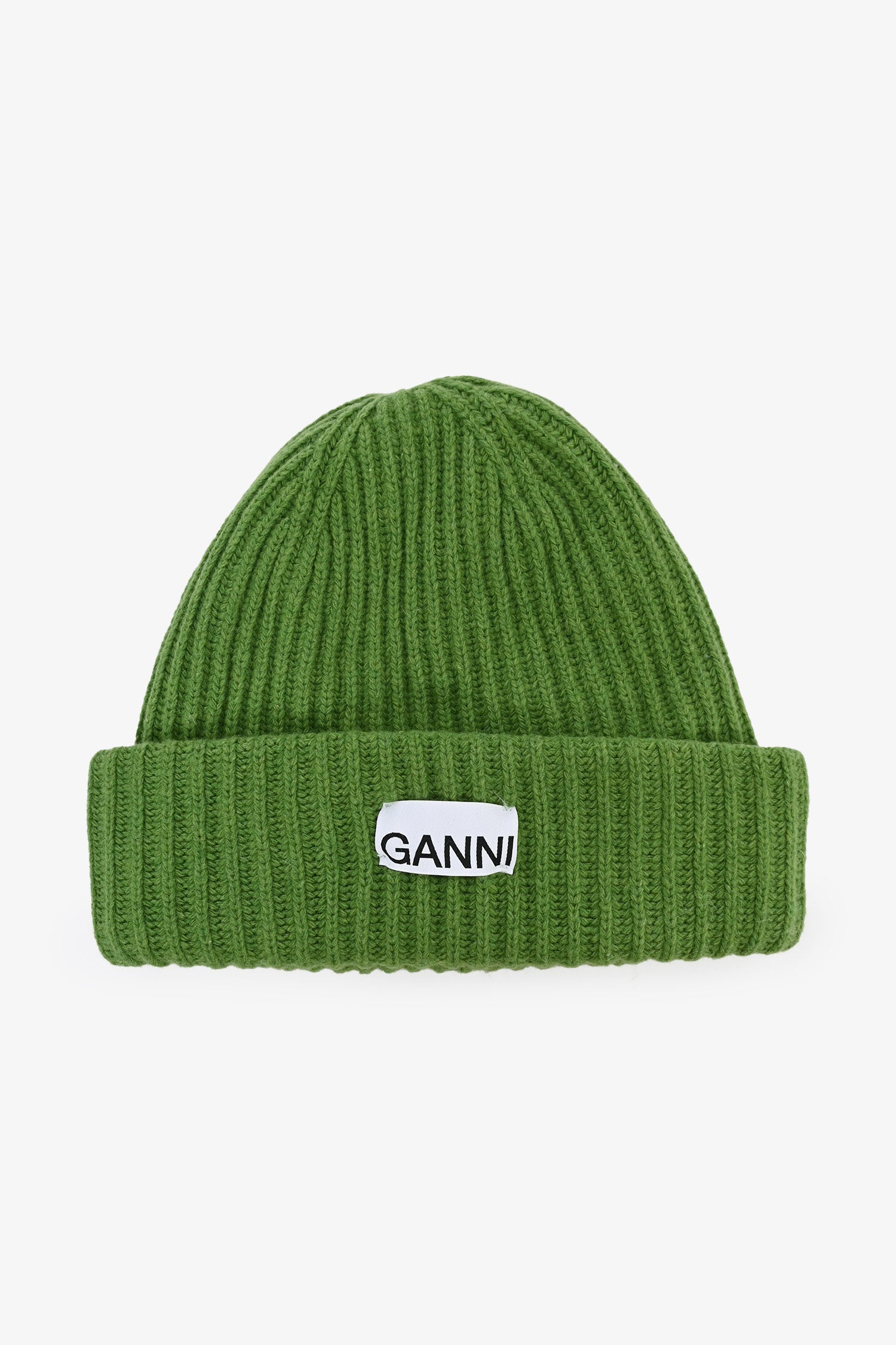 Refresh availabilityGanni Green Ribbed Wool Beanie. Tonal stitching.