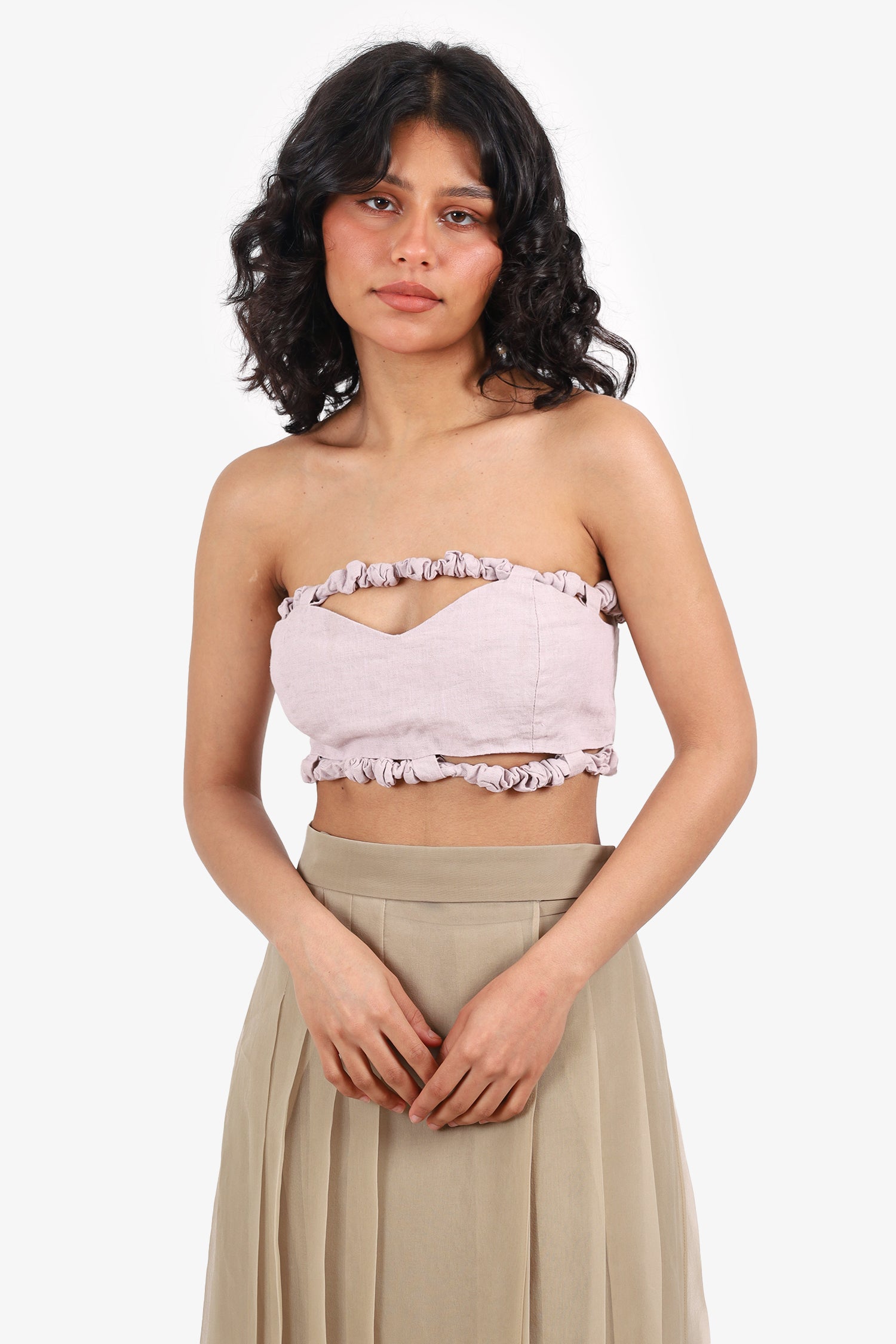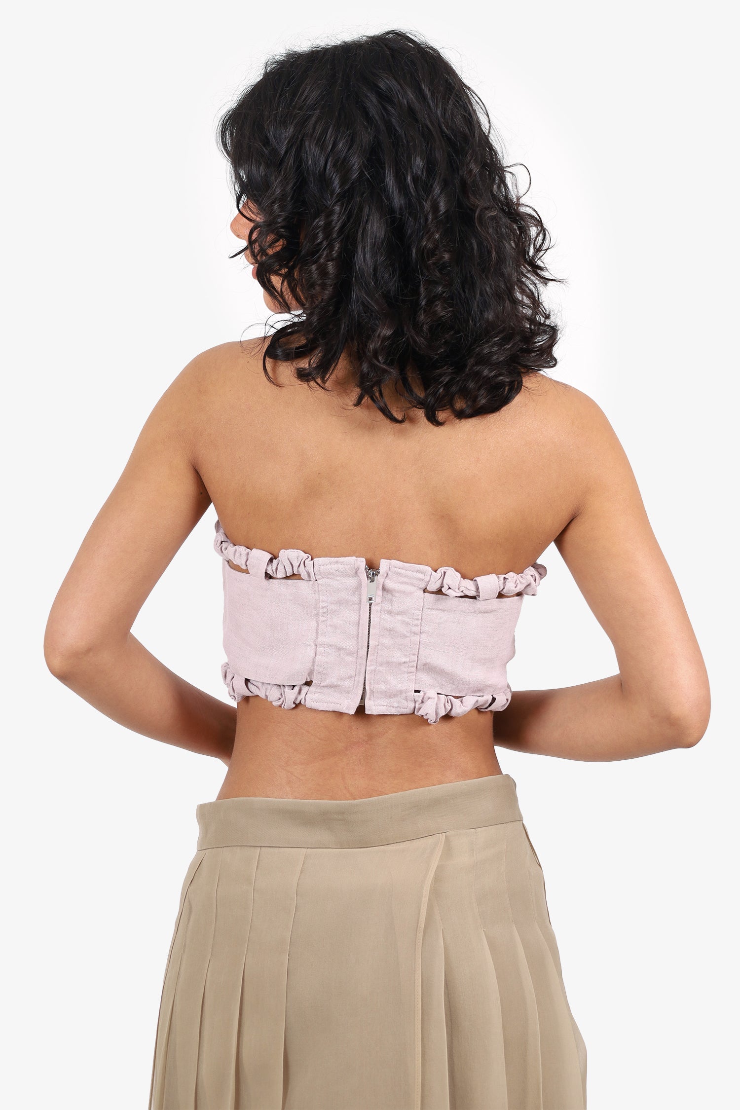 Ganni Pink 'Lilac' Strapless Cutout Crop Top Size 34