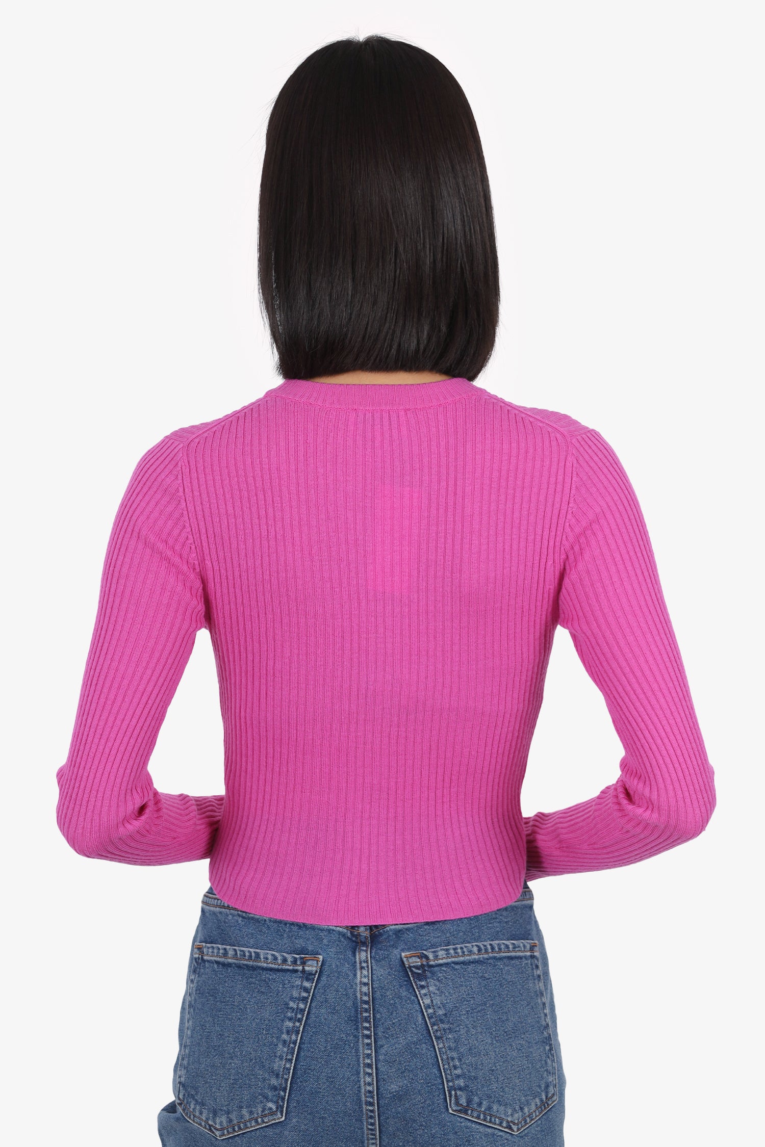 Ganni Pink Merino Wool Ribbed Cardigan Size XS