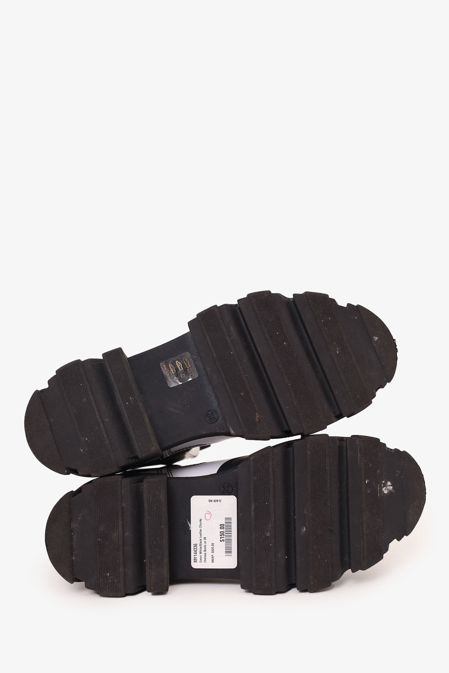 Ganni White/Black Leather Chunky Chelsea Boots Size 38