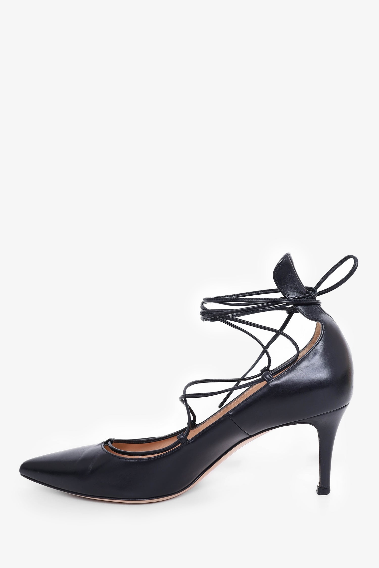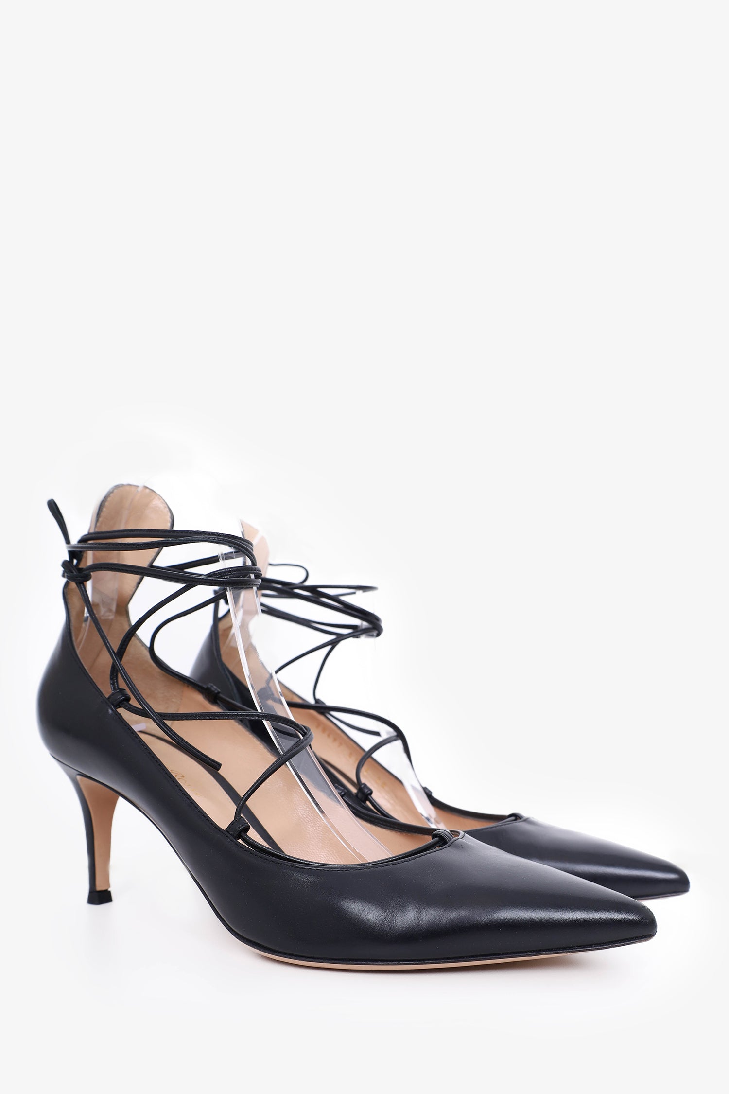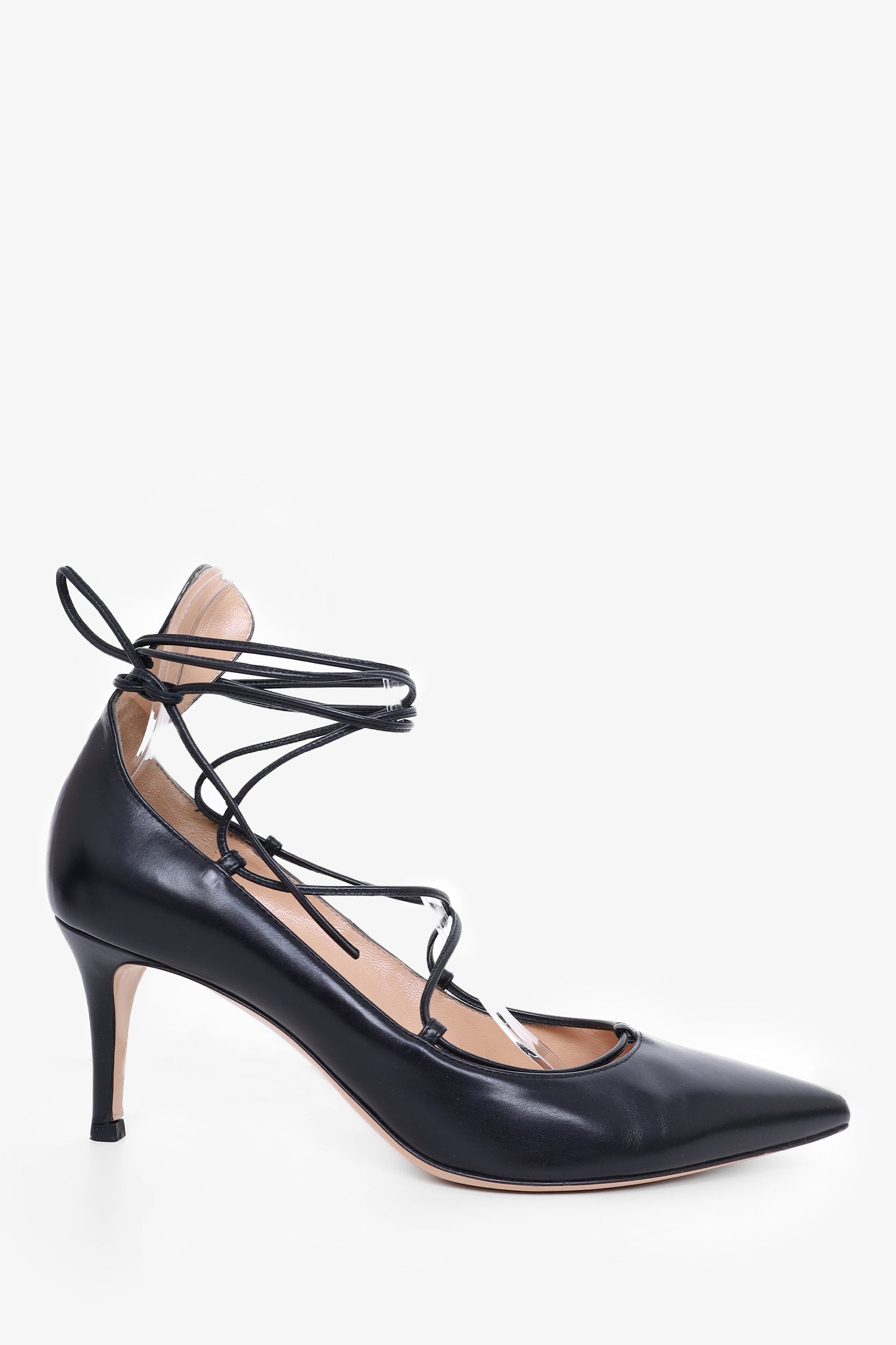 Refresh availabilityGianvito Rossi Black Lace Up Pumps Size 37. Pointed toe. Tonal stitching.