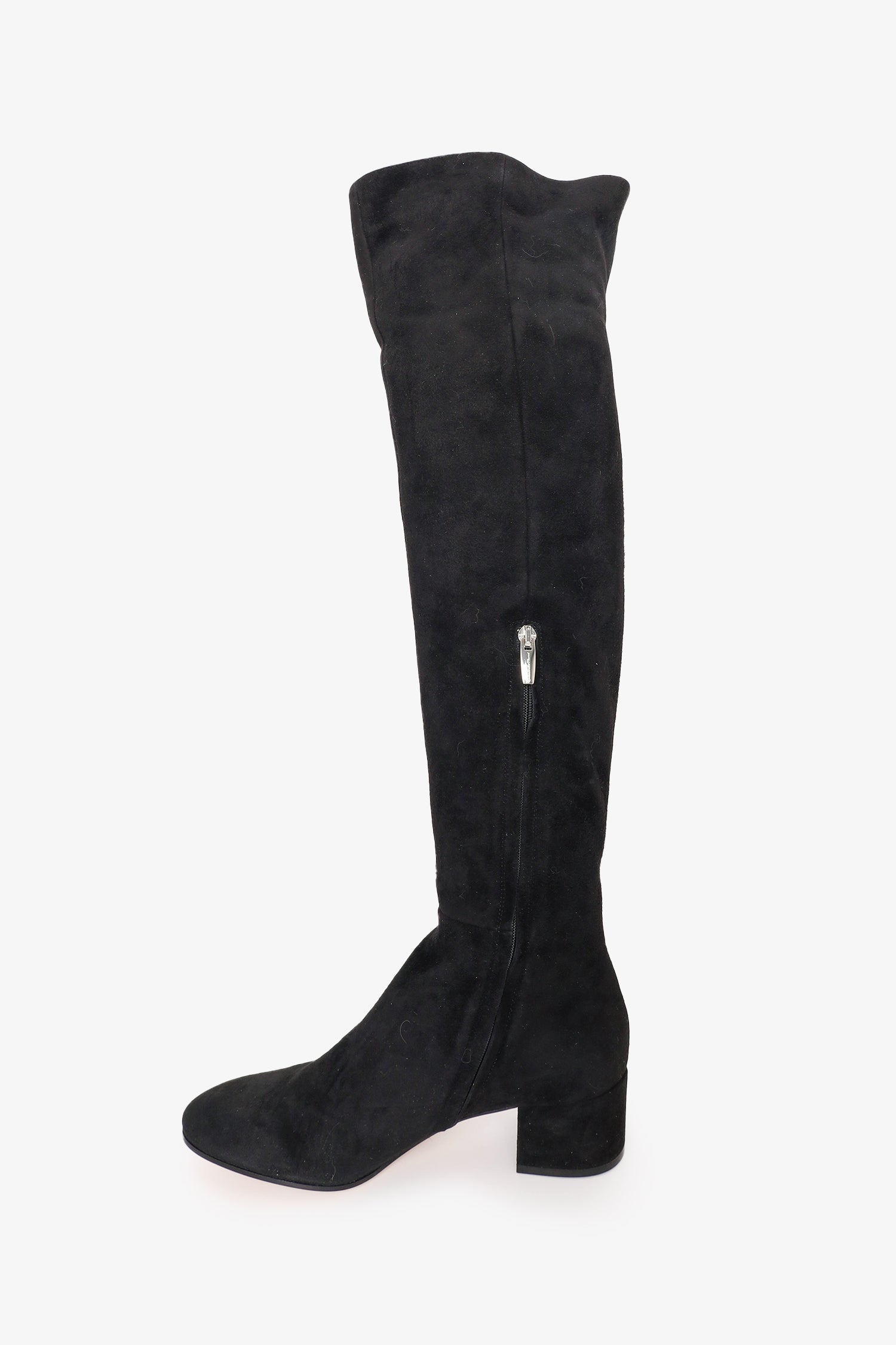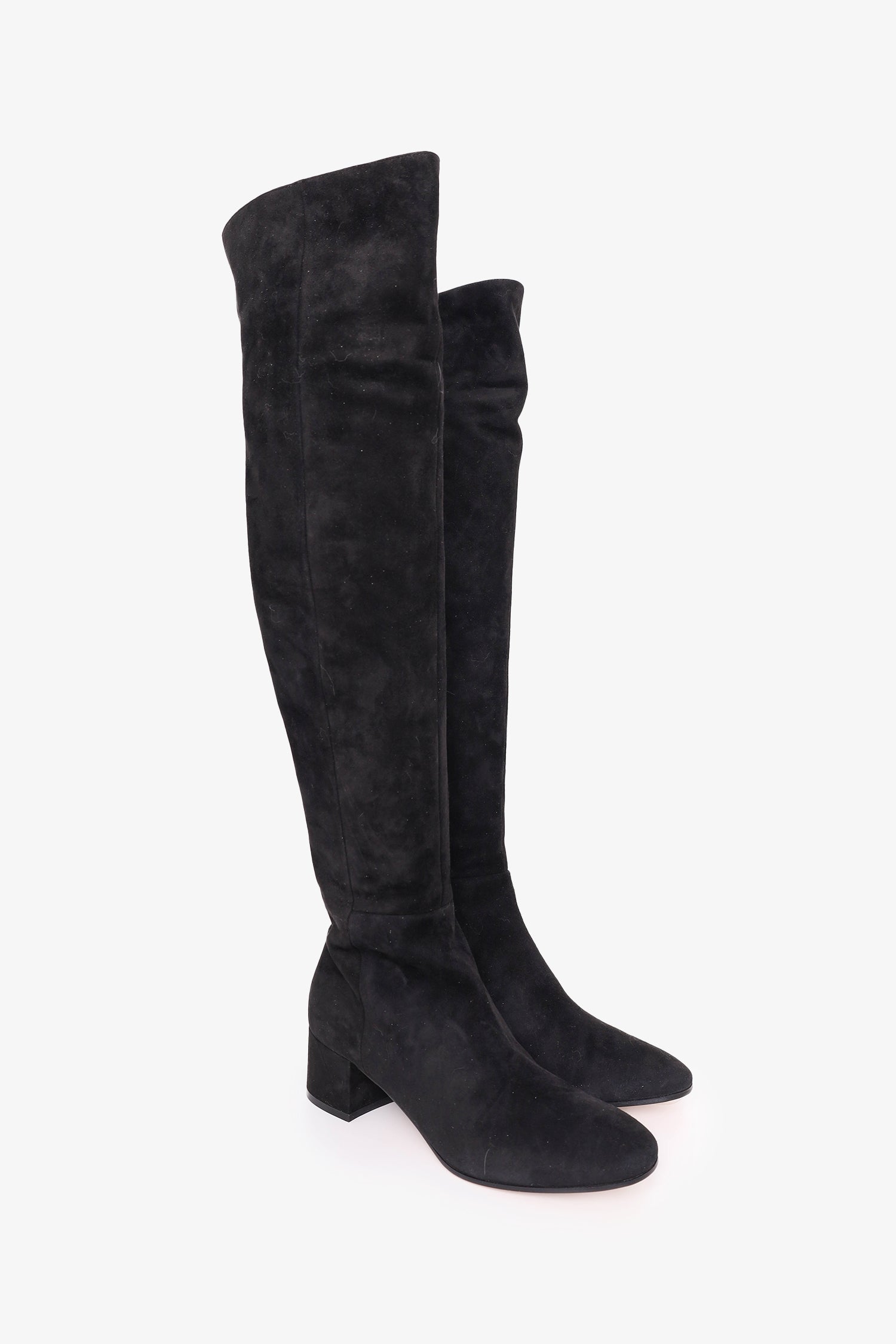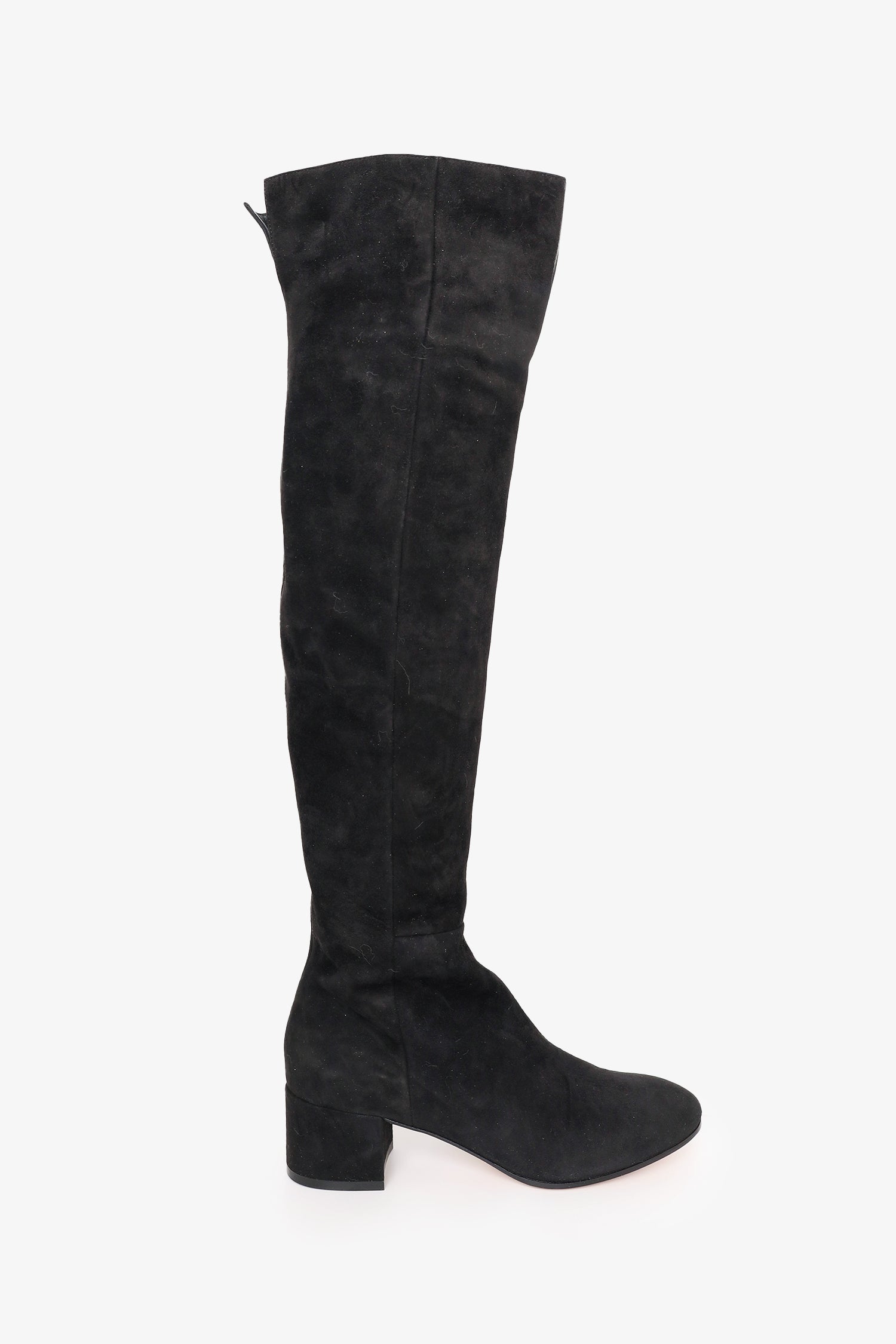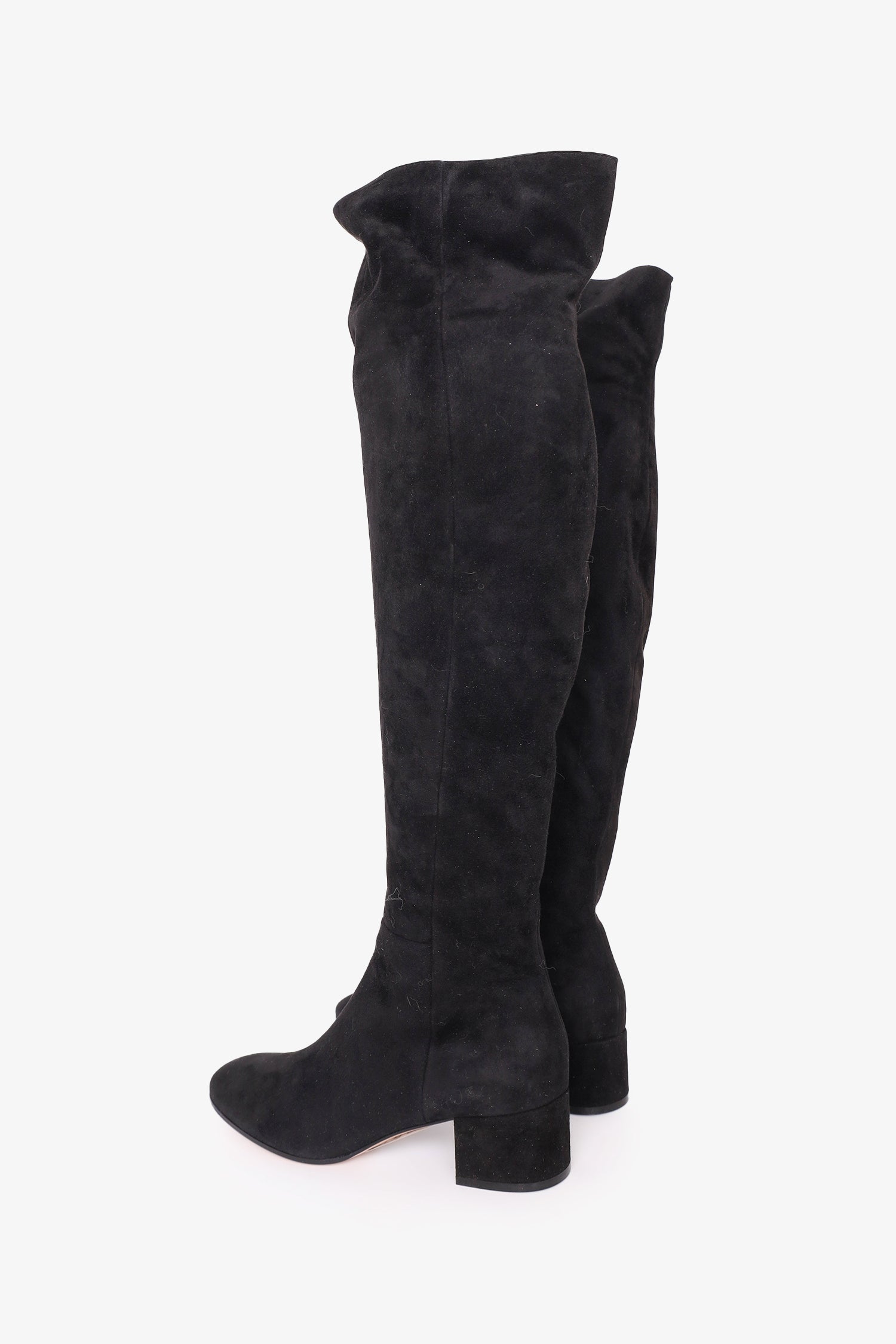 Refresh availabilityGianvito Rossi Black Suede Rolling Thigh Boots. Rear split. Round toe. Interior side zip closure. Silver-tone hardware. Tonal stitching.