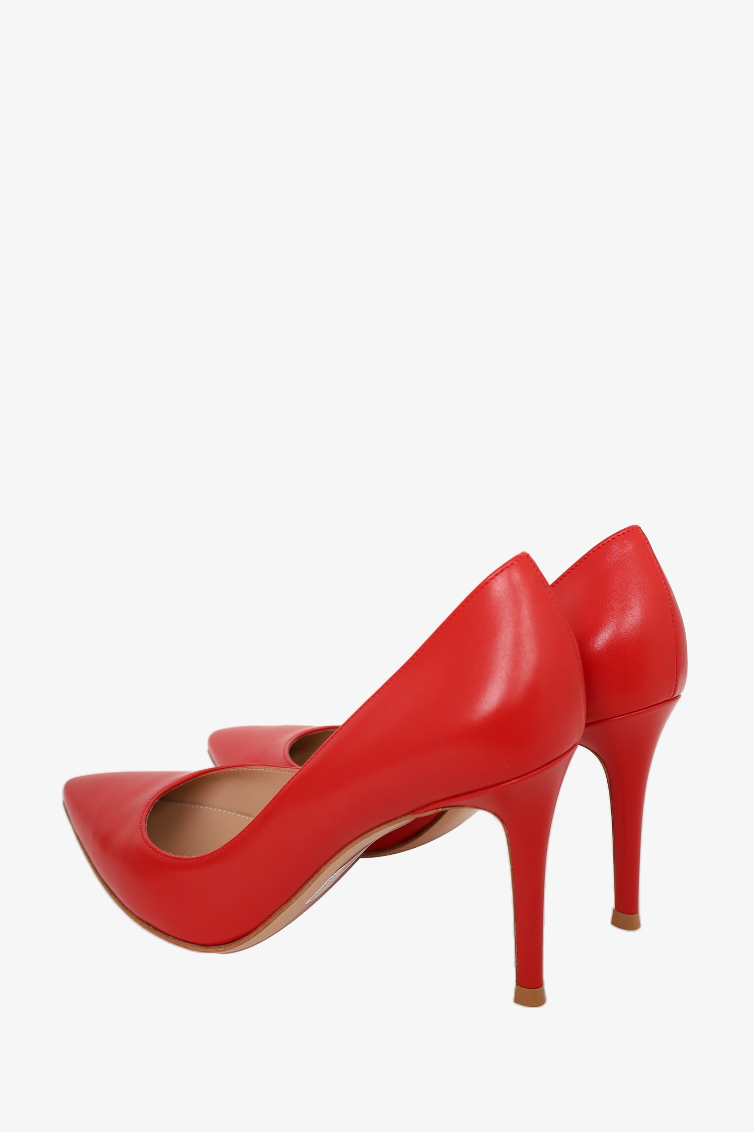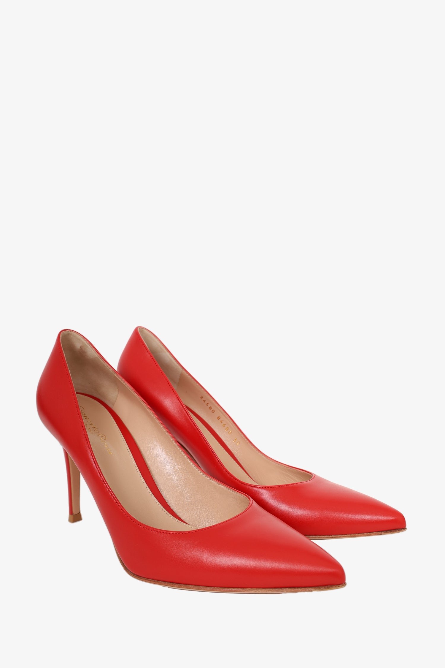 Refresh availabilityGianvito Rossi Red Leather Pointed Toe Heels. Pointed toe. Slip-on. Stiletto heel. Tonal stitching.