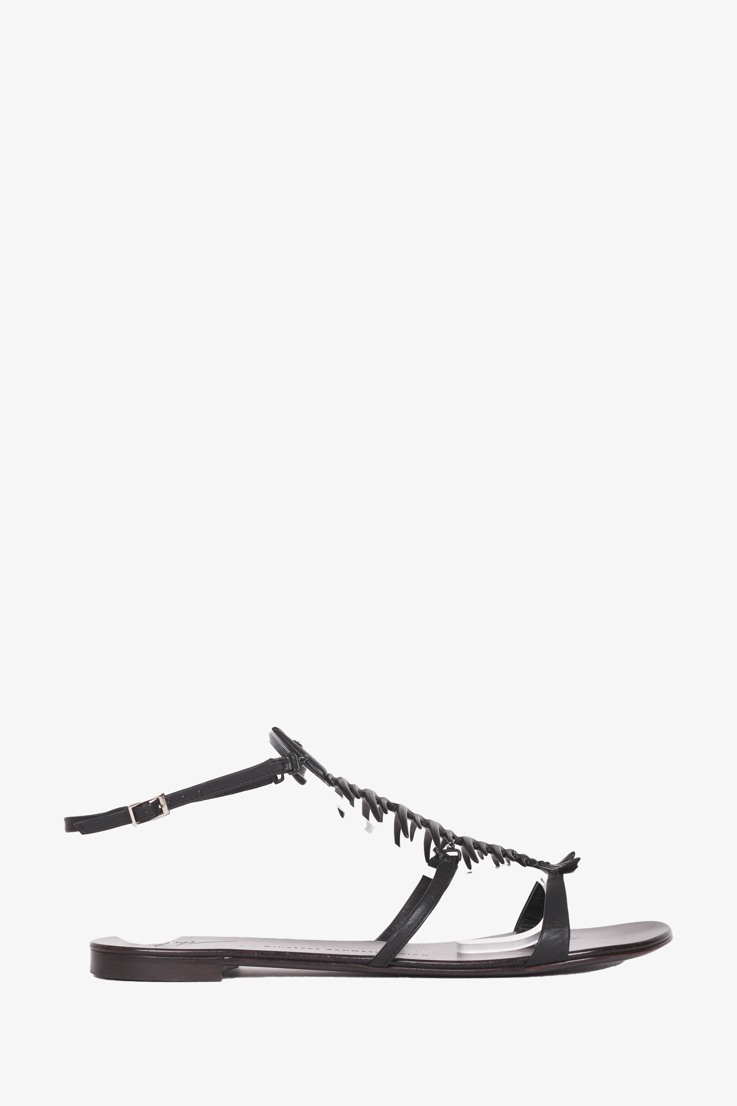 Refresh availabilityGiuseppe Black Fish Bone Sandals. Slip-on. Round toe. Ankle strap with buckle closure. Tonal stitching.