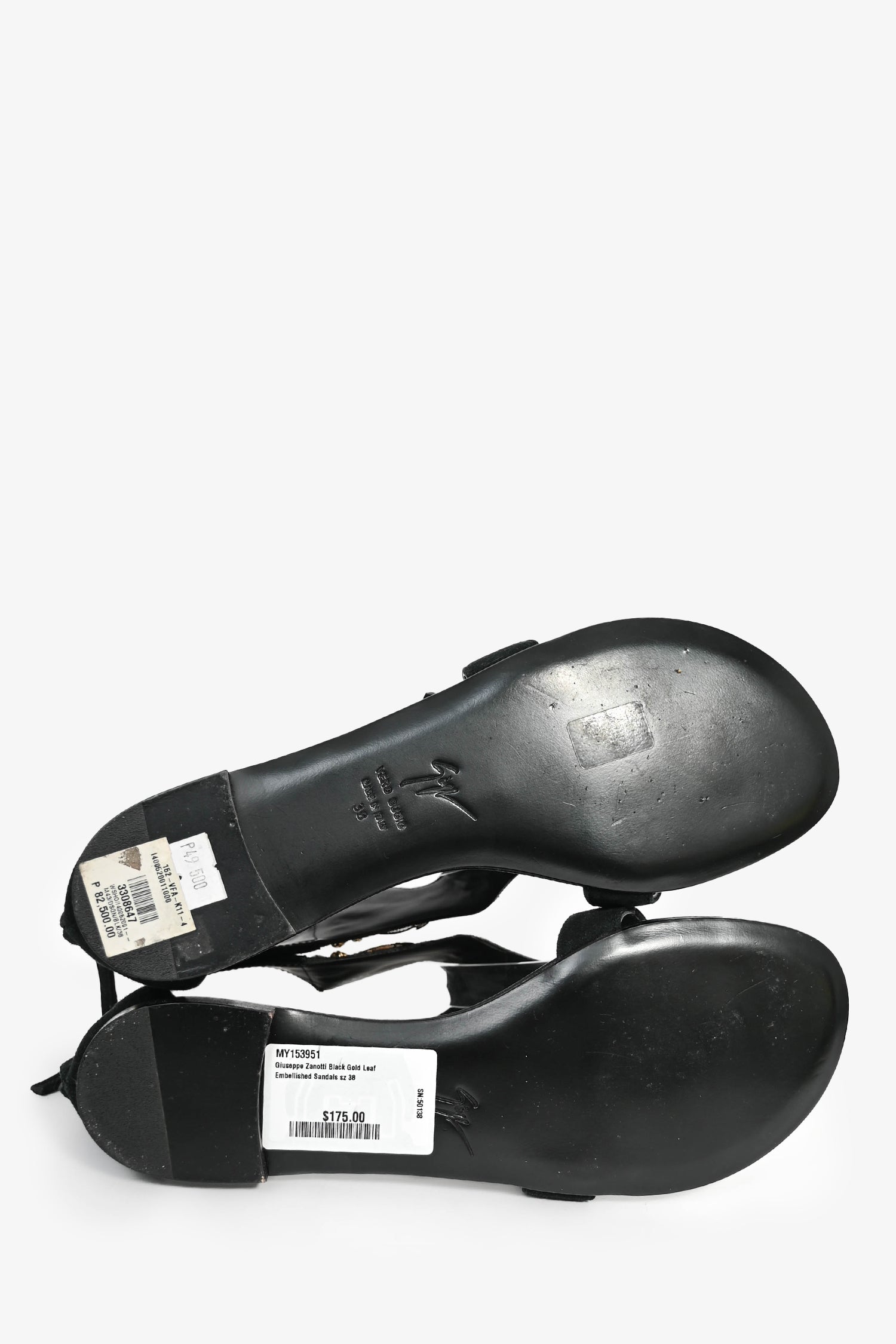 Giuseppe Zanotti Black Gold Leaf Embellished Sandals Size 38