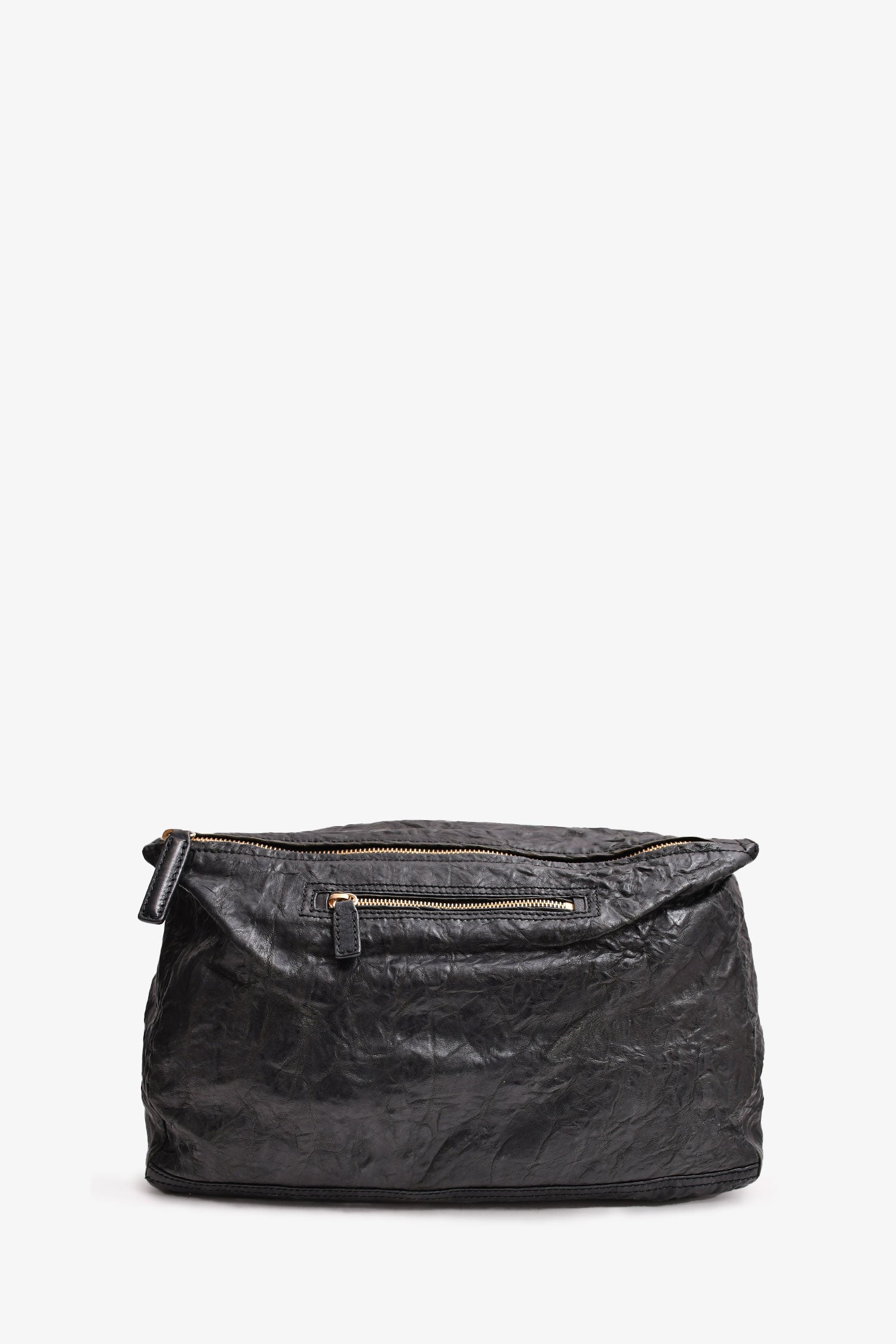 Refresh availabilityGivenchy Black Crinkled Leather Large Pandora Bag. Gold-tone hardware. Zipped exterior compartments. Single rolled top handle. Attachable shoulder strap. Zipped interior compartment. Lined.