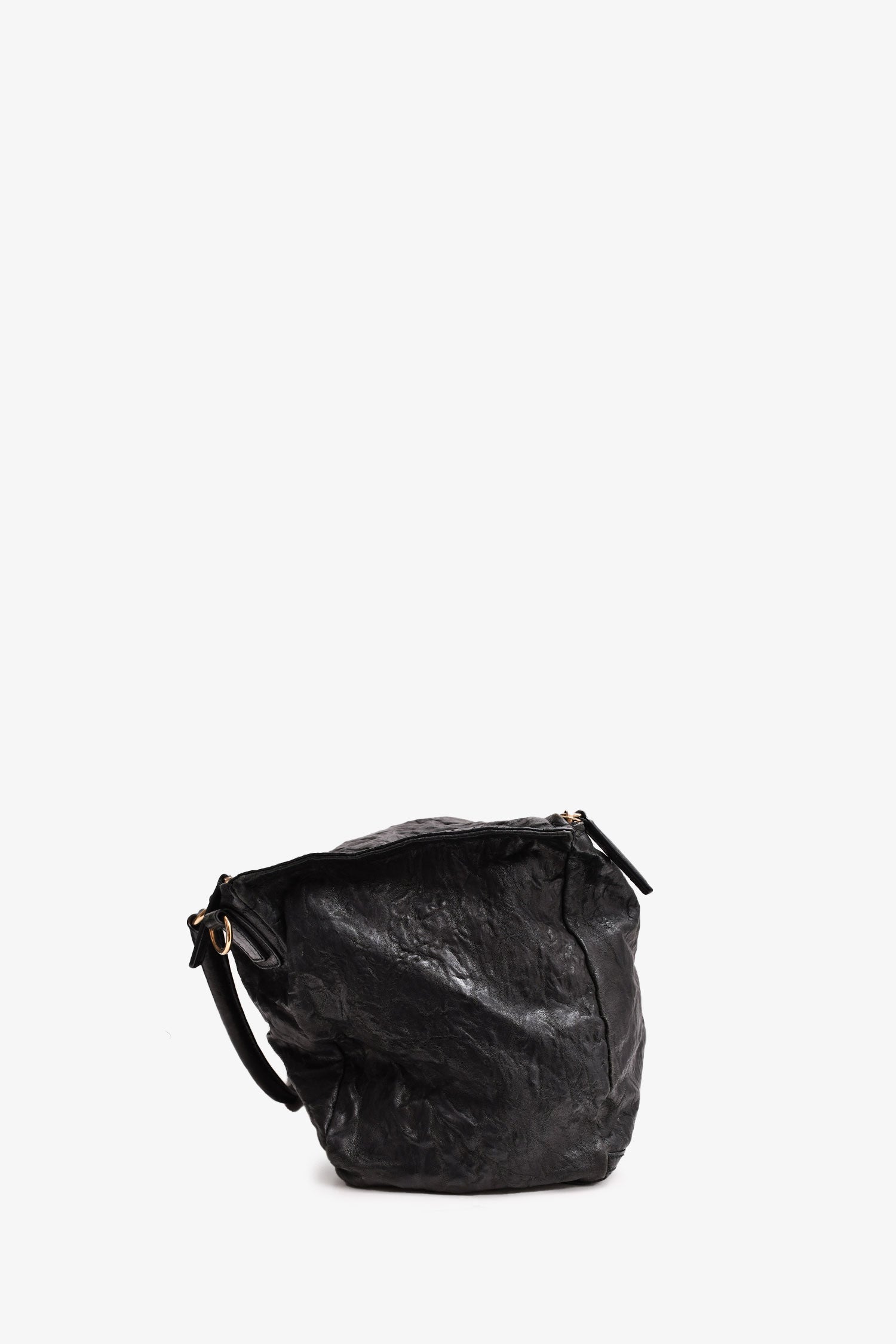 Givenchy Black Crinkled Leather Large Pandora Bag with Strap