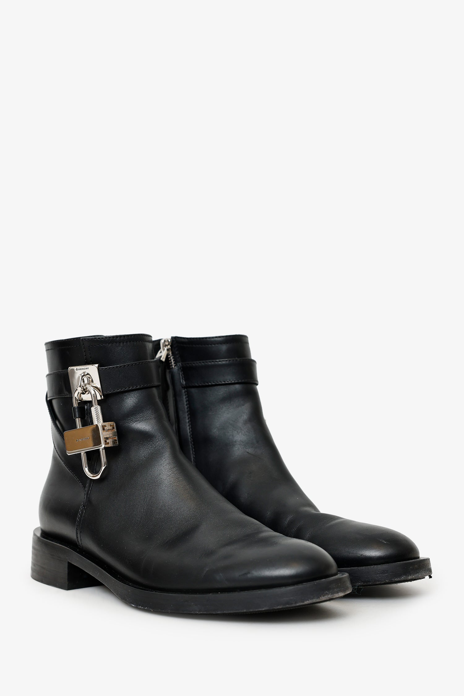Givenchy Black Leather Lock Ankle Boots Size 38