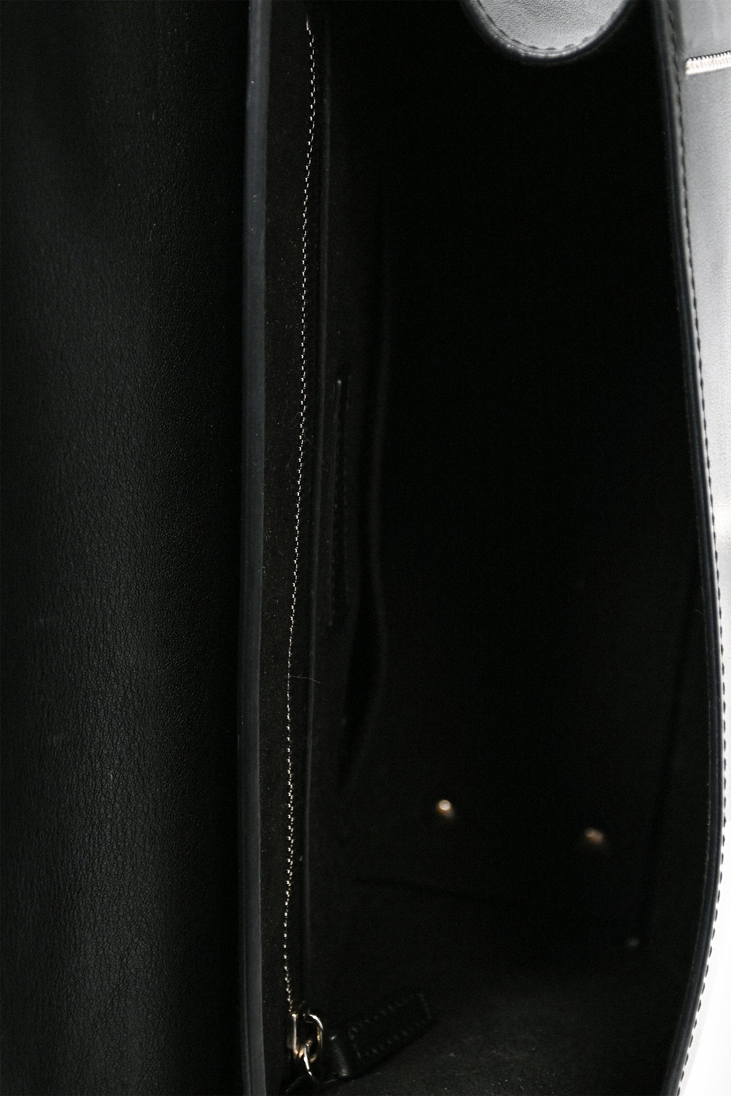Refresh availabilityGivenchy Black Leather Logo 'Shark' Shoulder Bag. Single top rolled handle. Front fold-over flap with turn-lock closure. 2 interior wall pockets; 1 slip and 1 with zip closure. Removable and adjustable strap. Silver-tone hardware.