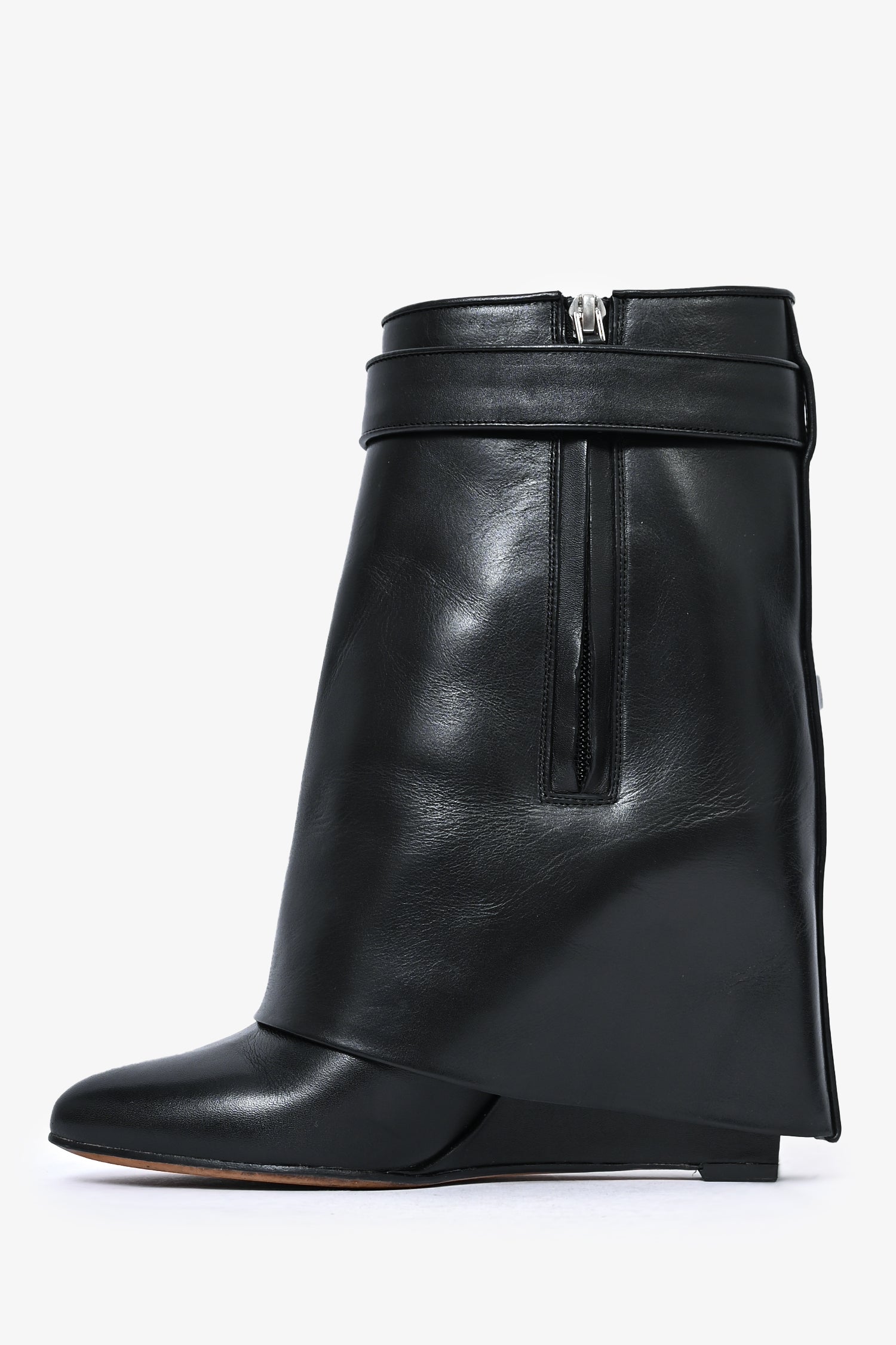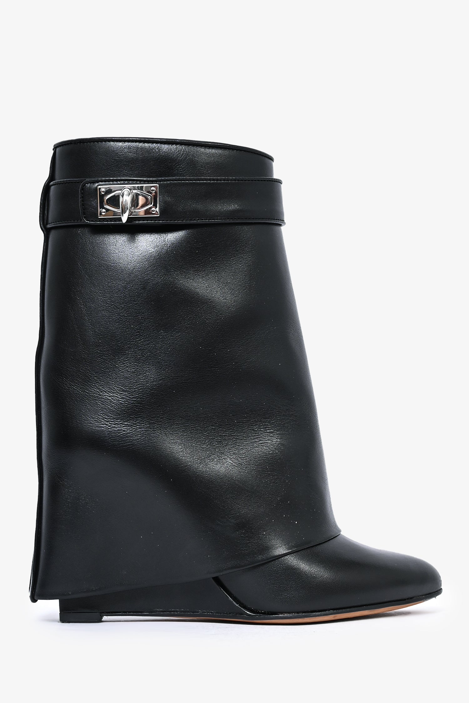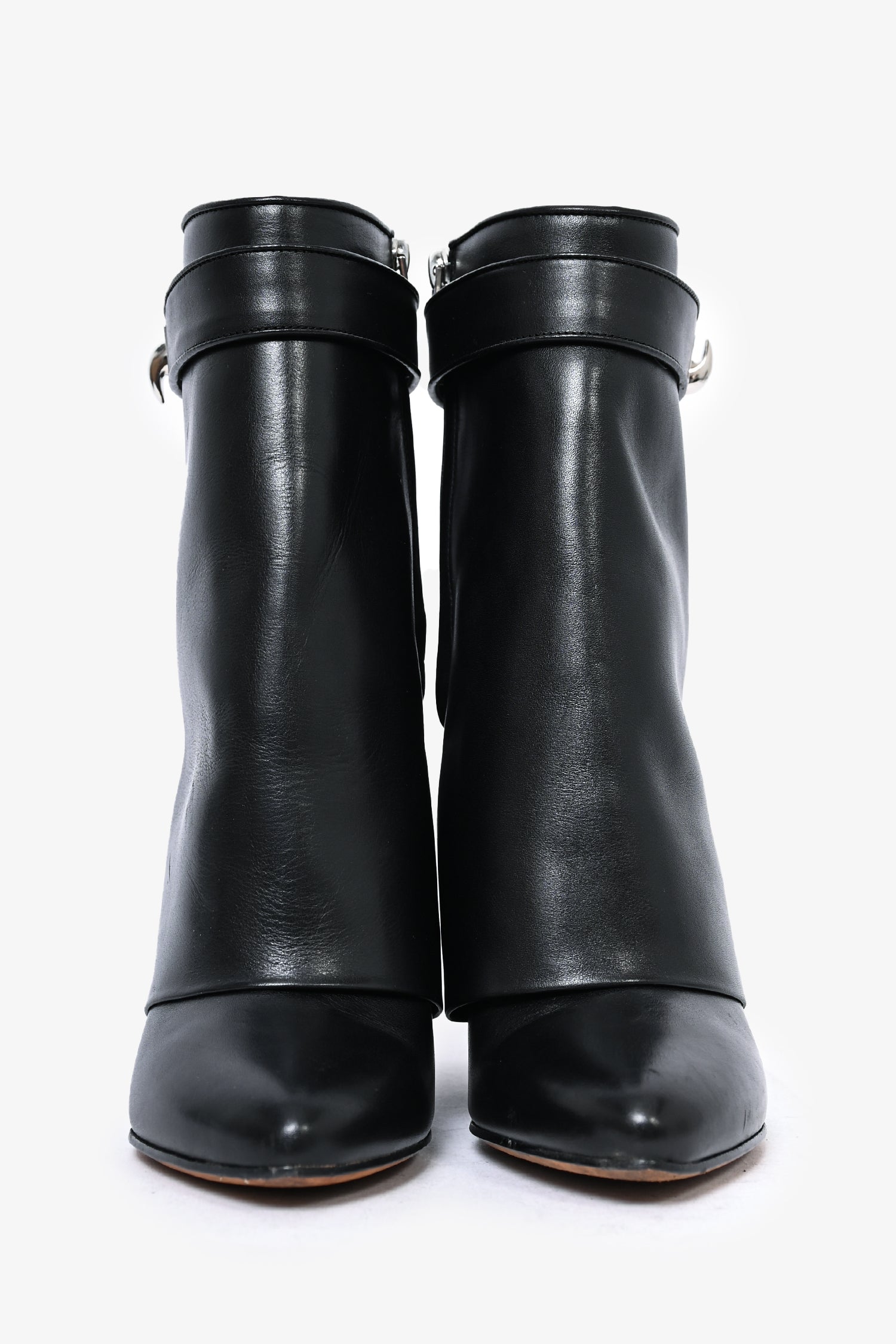 Refresh availabilityGivenchy Black Leather Shark Ankle Booties. Side zip closure. Almond toe. Silver-tone hardware.