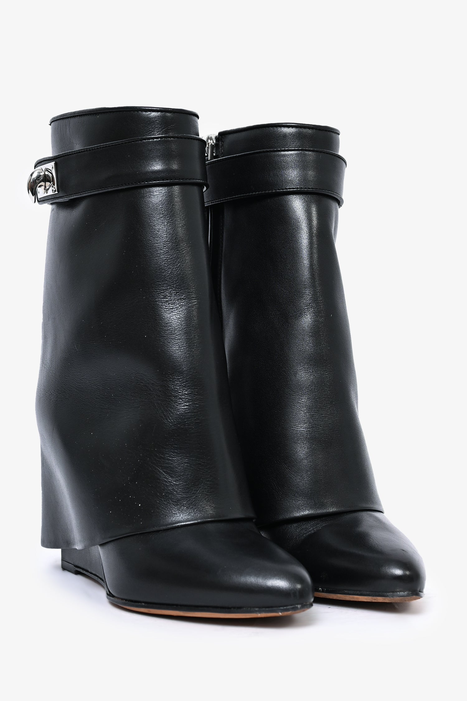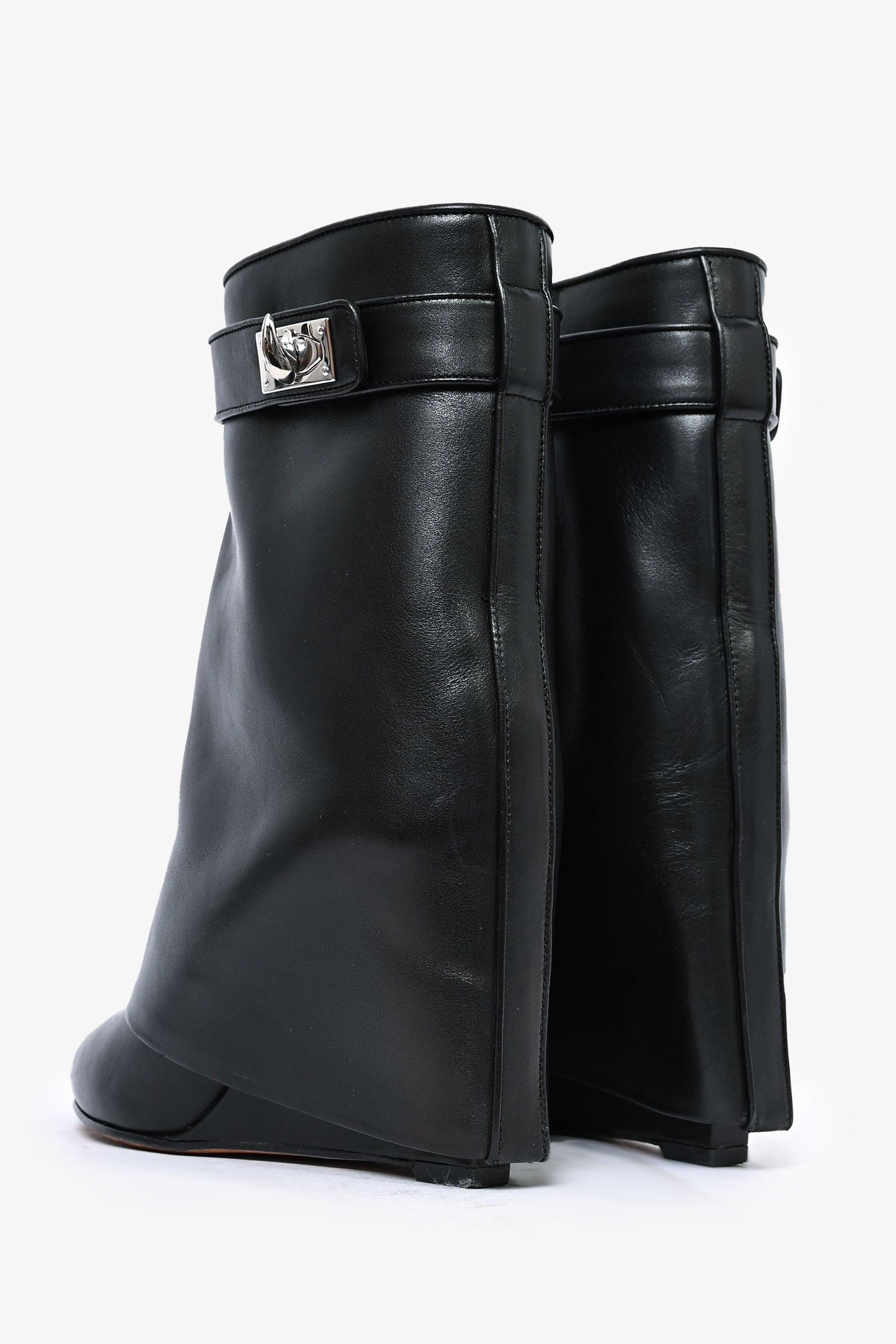 Givenchy Black Leather Shark Ankle Booties Size 38