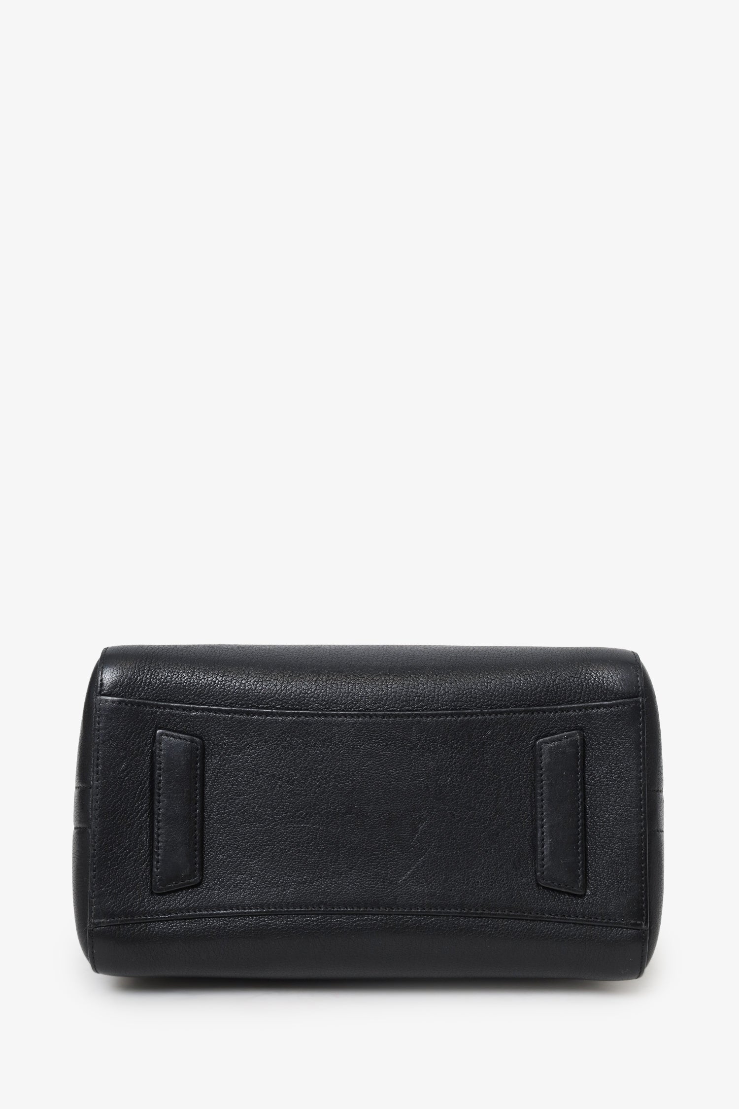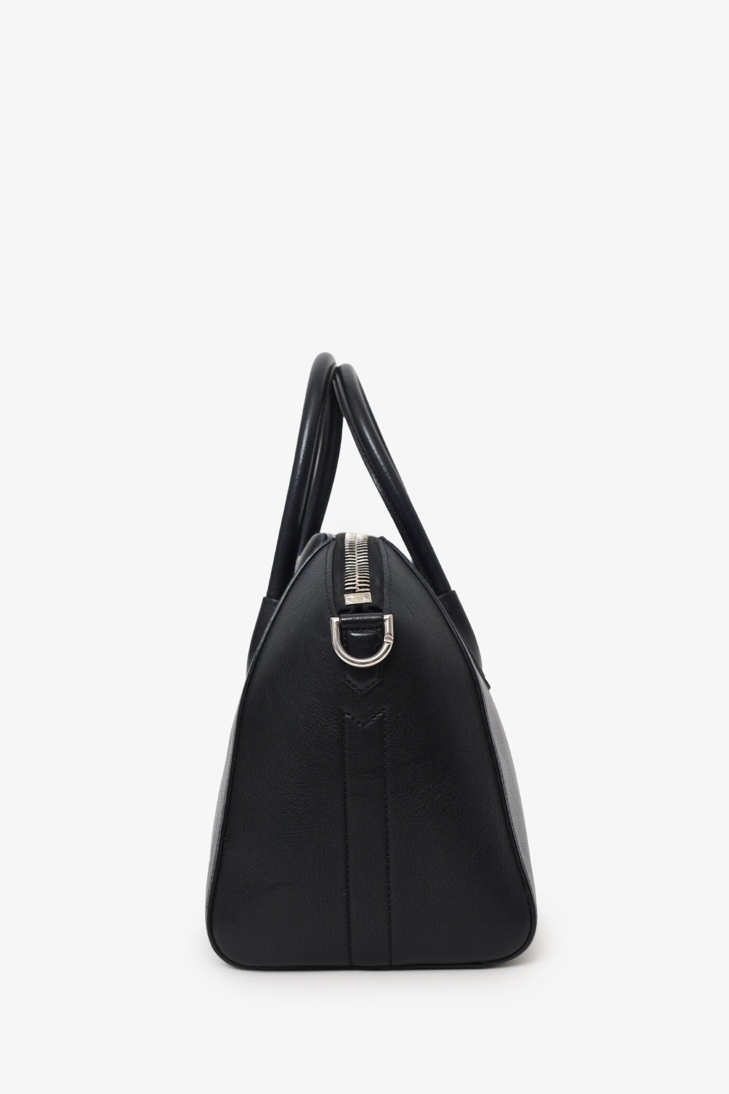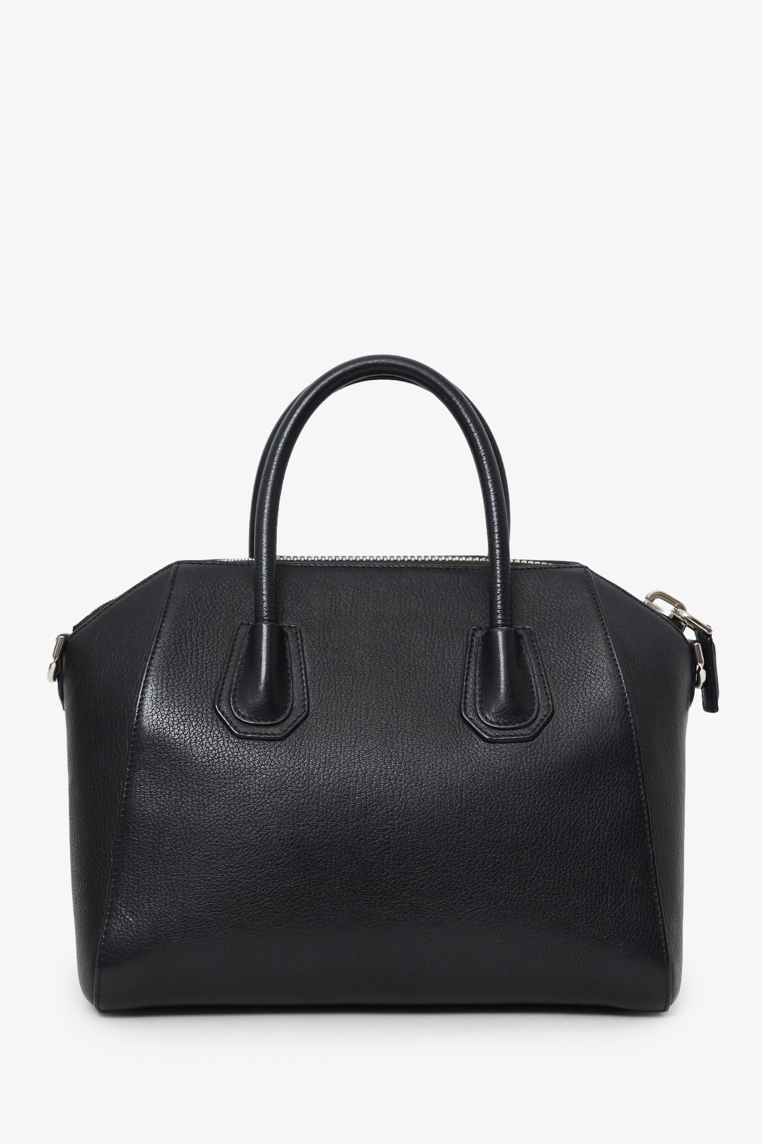 Refresh availabilityGivenchy Black Leather Small Antigona Bag with Strap. Top zip closure. Twin top leather handles. Removable leather shoulder strap. Canvas-lined interior. Single interior zip pocket. Silver-tone hardware. Tonal stitching.