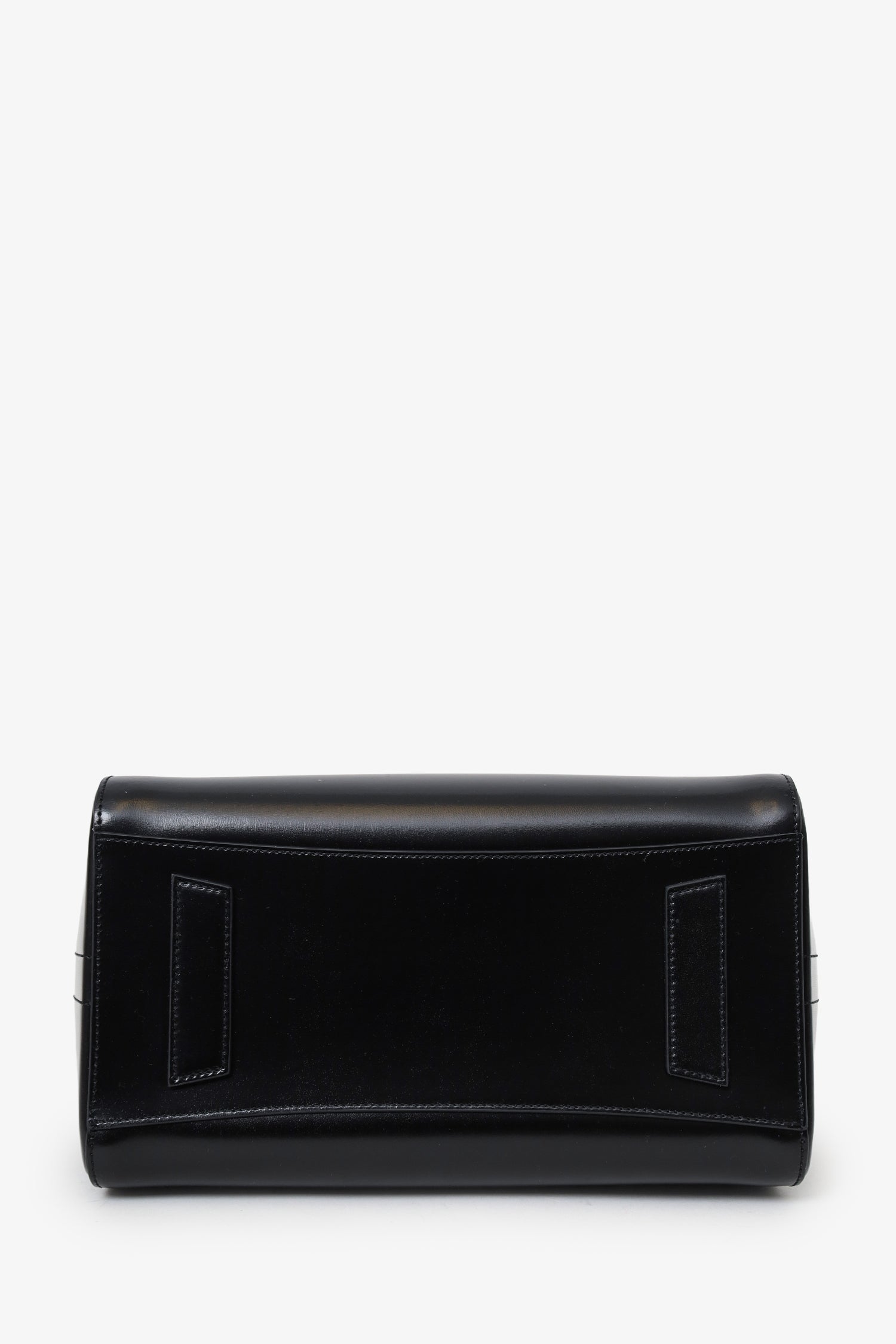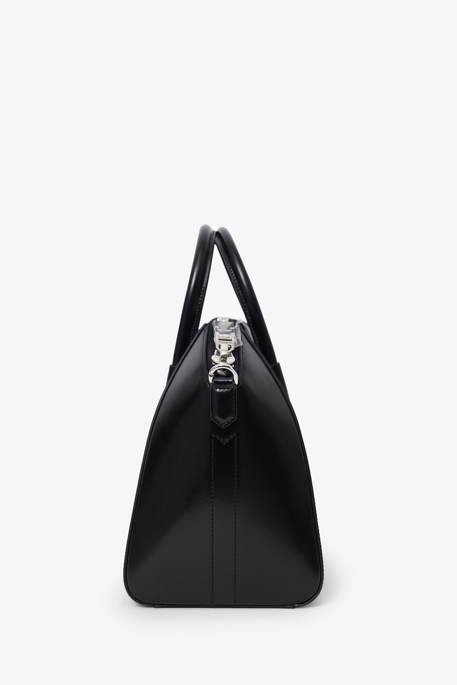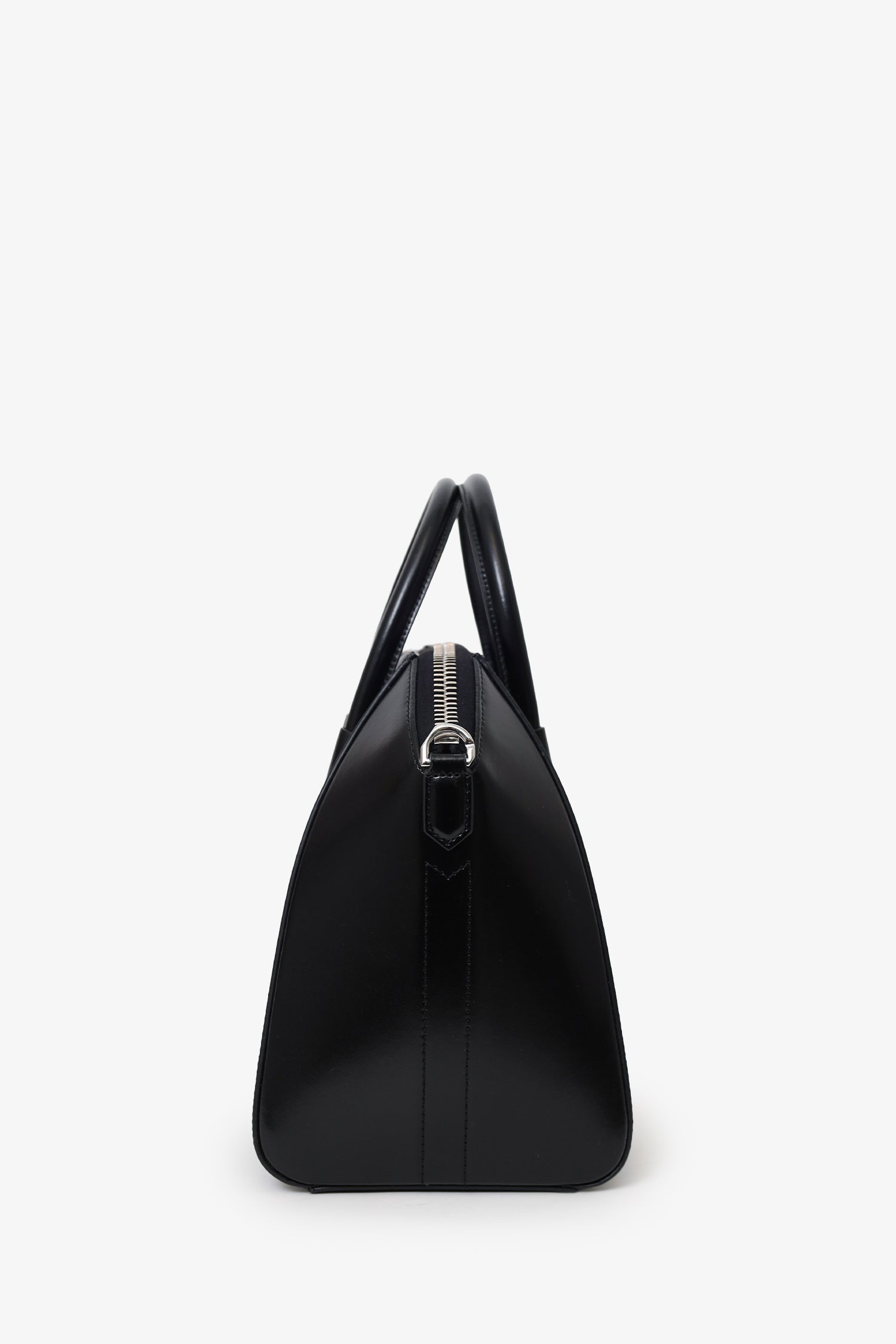 Refresh availabilityGivenchy Black Leather Small Antigona Top Handle With Strap. Top zip closure. Twin top handle. Removable shoulder strap. 2 interior pockets; 1 zip and 1 slip. Silver-tone hardware. Tonal stitching.