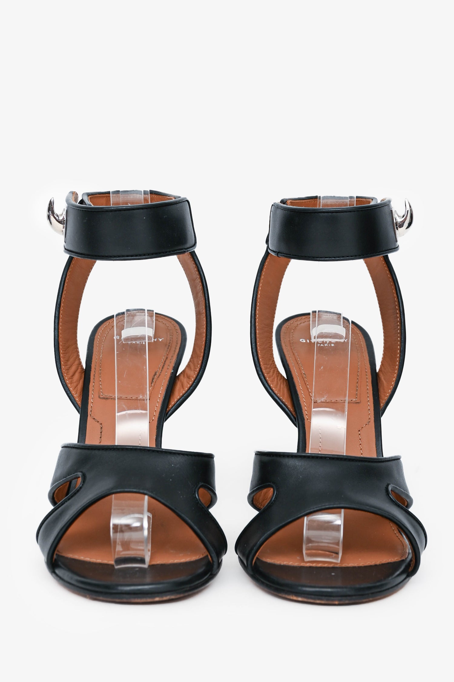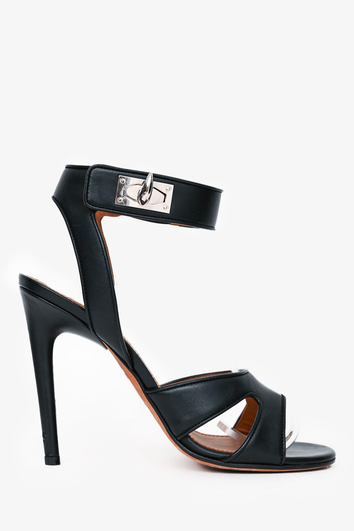Refresh availabilityGivenchy Black Leather Strappy Heels. Stiletto heel. Leather insole. Turn-lock closure on the ankle straps. Silver-tone hardware. Tonal stitching.