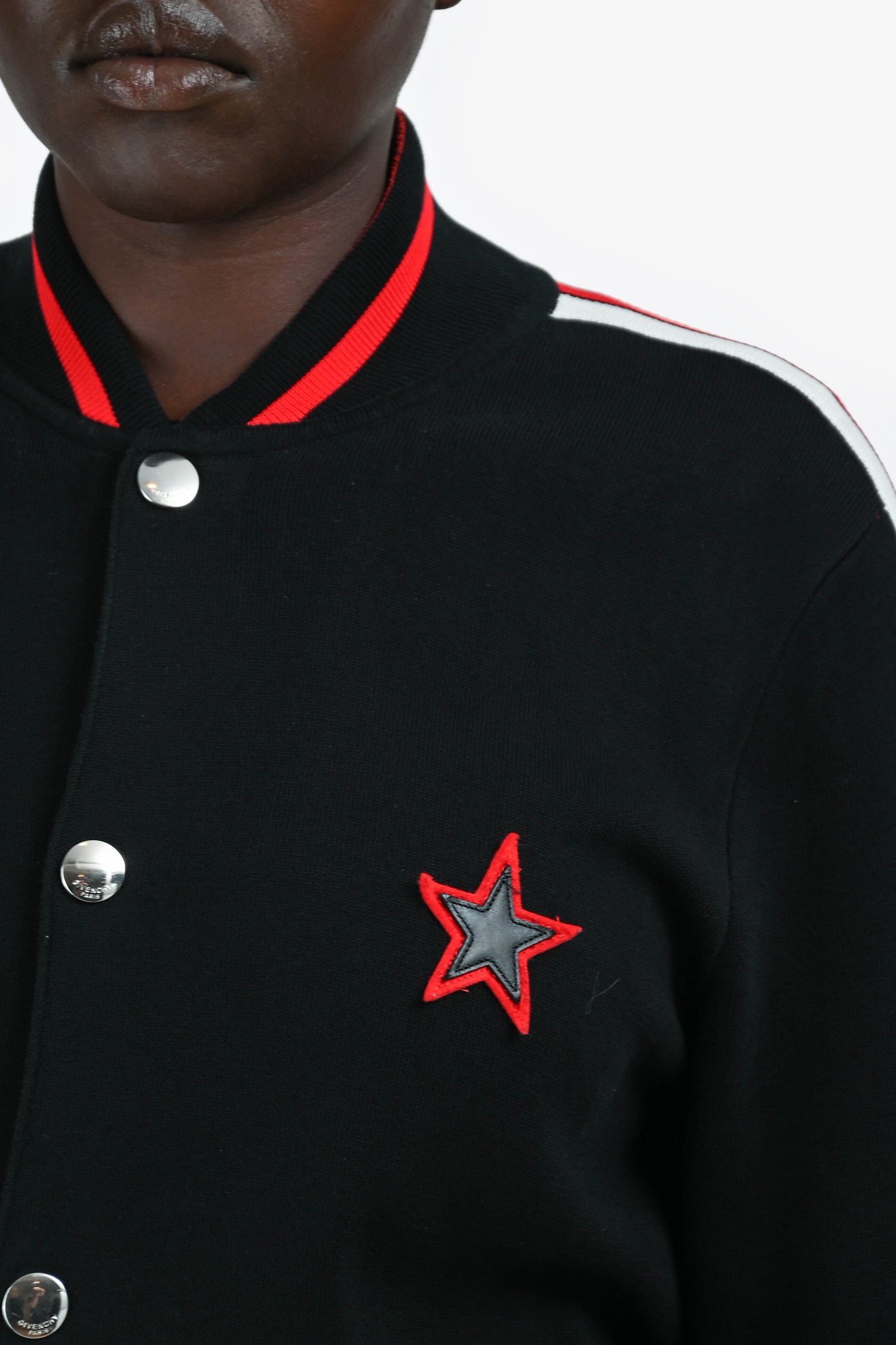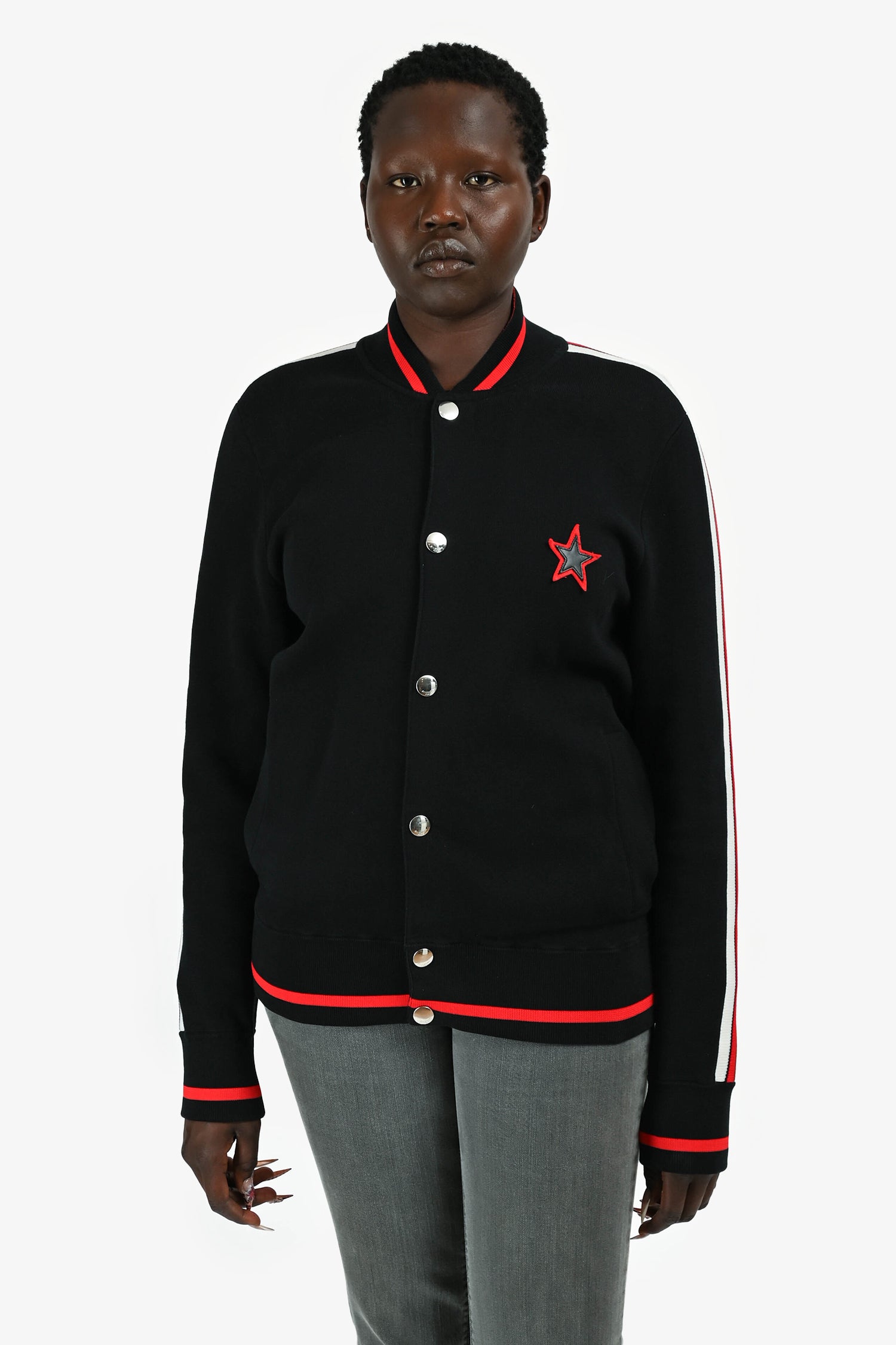 Refresh availabilityGivenchy Black Logo Baseball Jacket. Front snap button closure. Ribbed collar, cuffs, and hem. Logo embroidery and leather patch at chest. Side slit pockets. Tonal stitching.