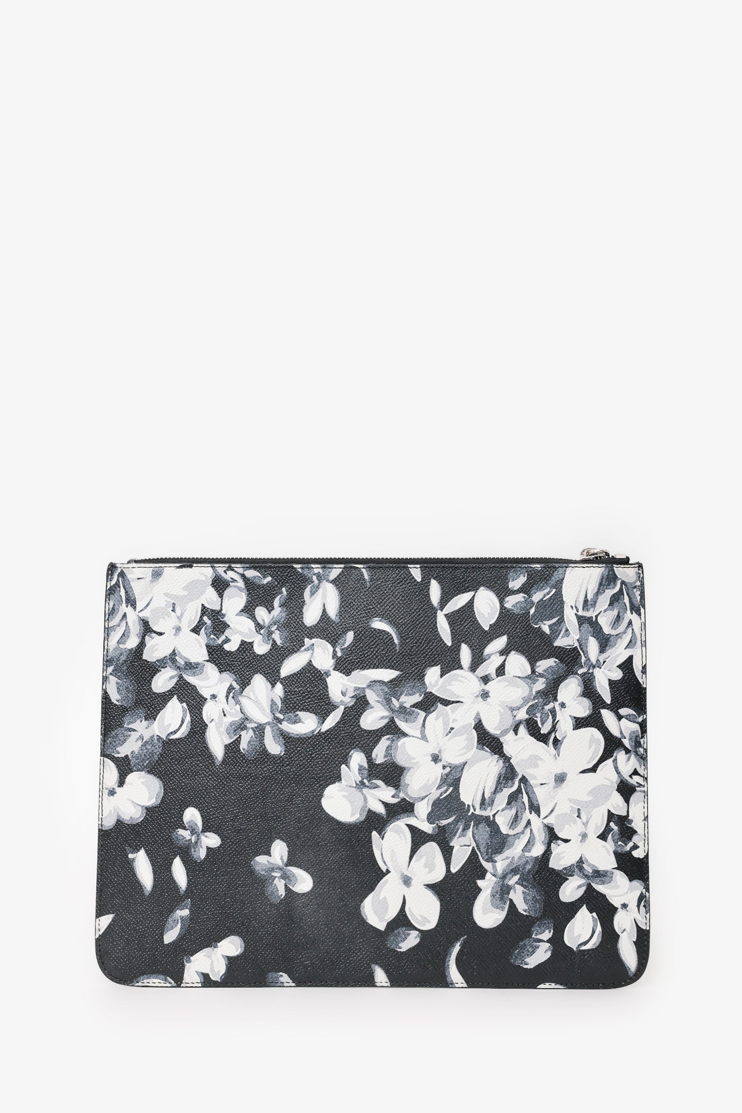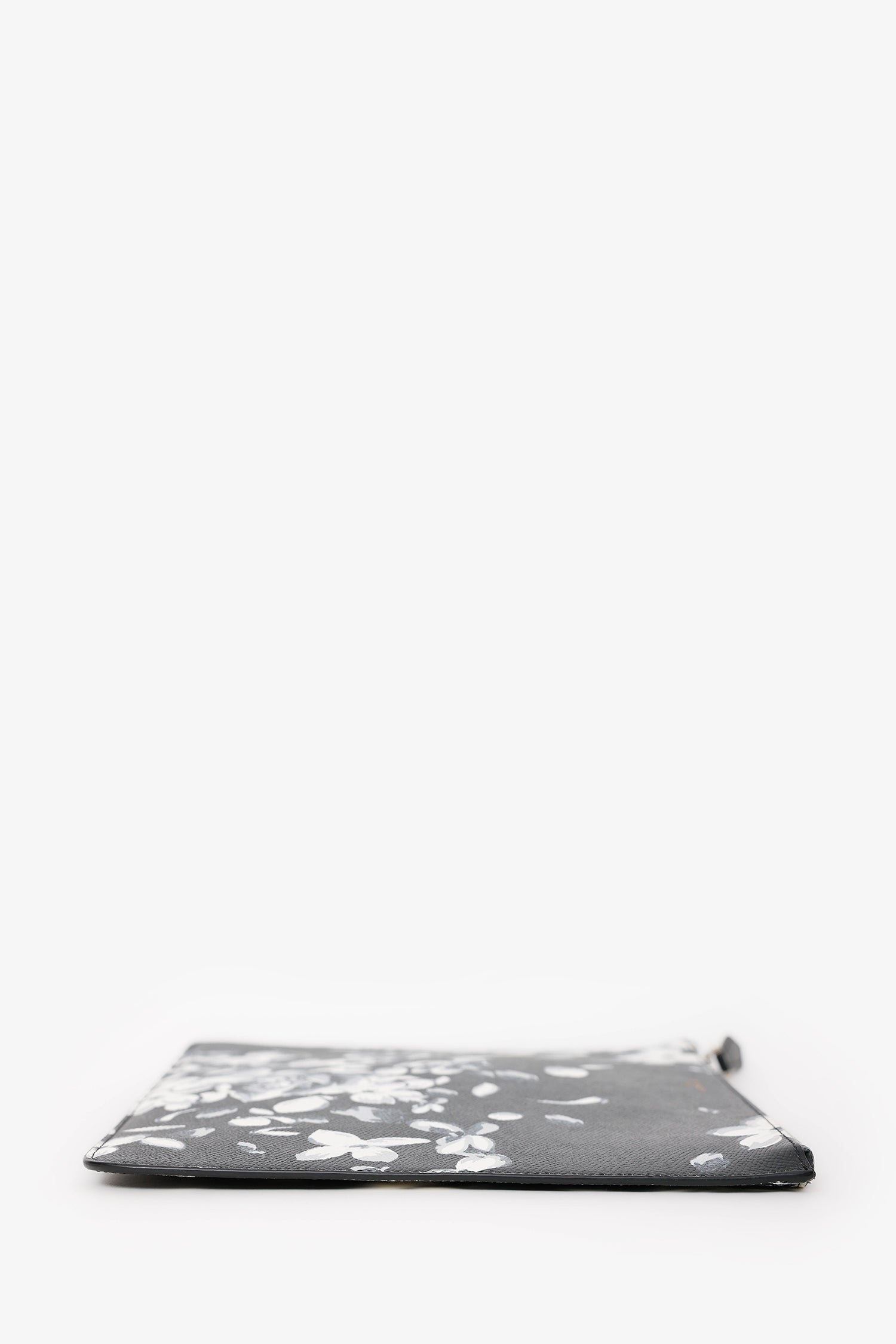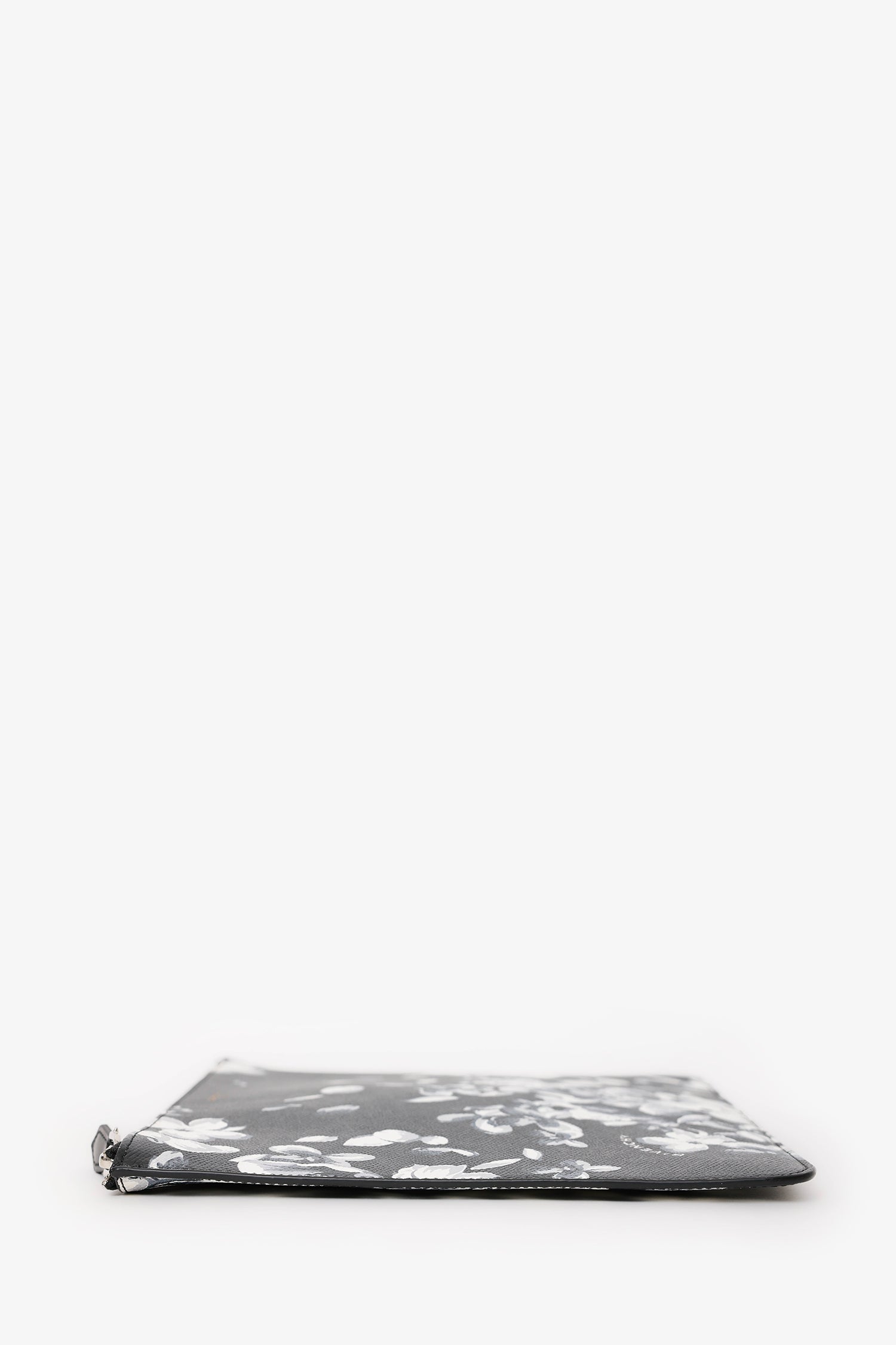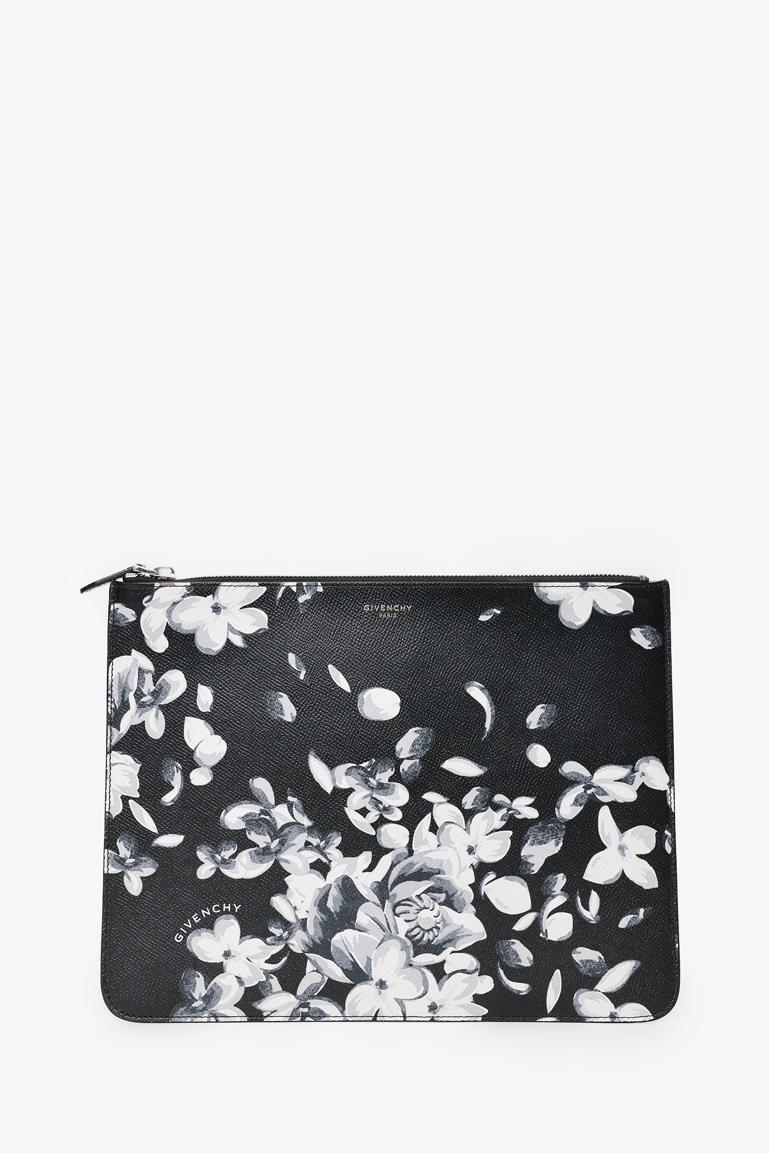 Refresh availabilityGivenchy Black/White Coated Canvas Floral Pouch. Top zip closure. Lined interior. Silver-tone hardware. Tonal stitching.