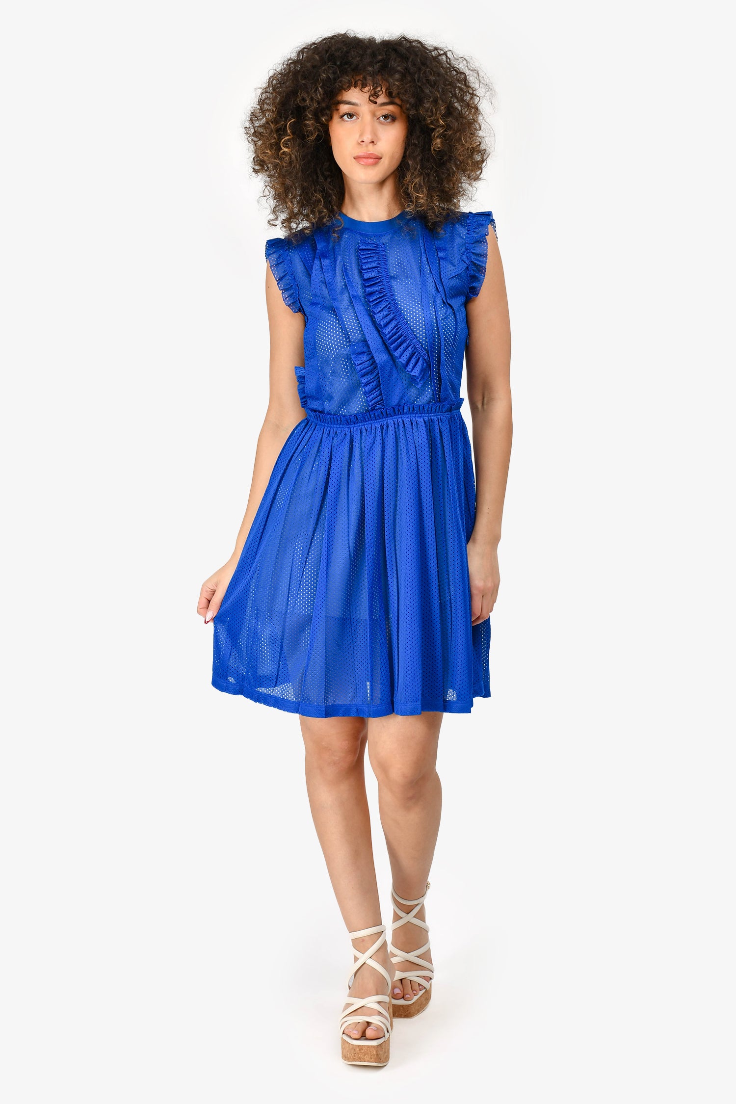 Refresh availabilityGivenchy Blue Ruffle Pleated Sleeveless Dress. Back and side zip closure. Unlined interior. Tonal stitching.