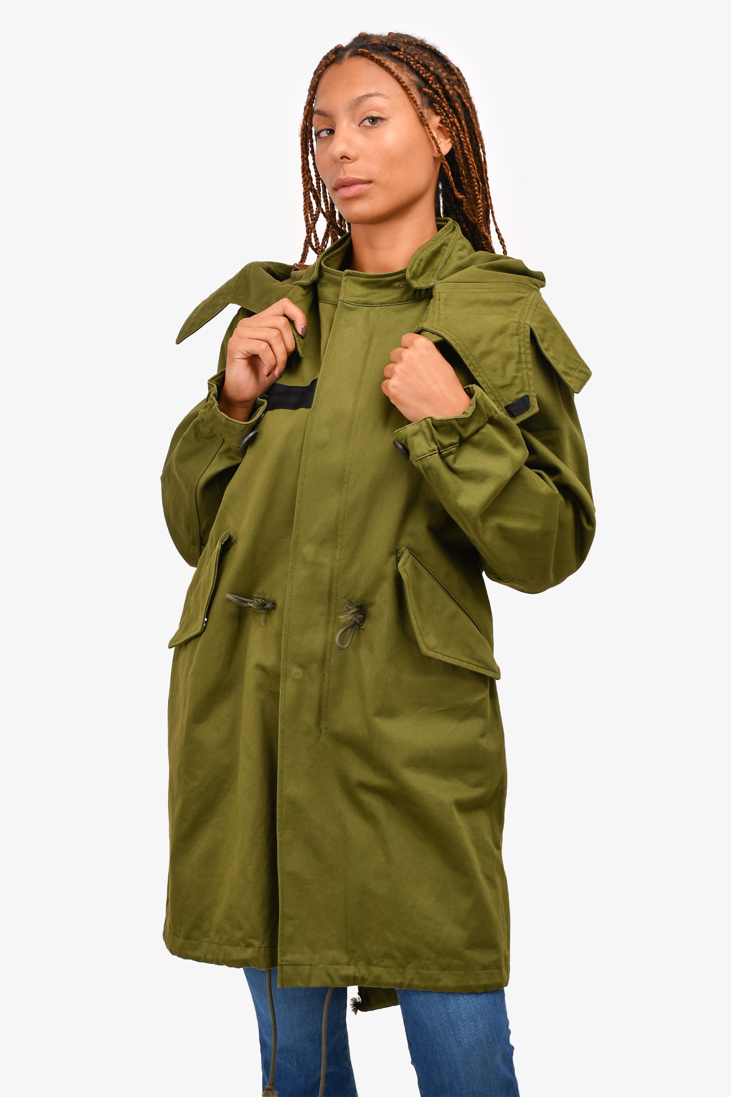 Refresh availabilityGivenchy Green Military Parka Coat with Multicolour Print. Front two-way zip and snap-button closures. Front pockets with snap-button closure. Unlined.