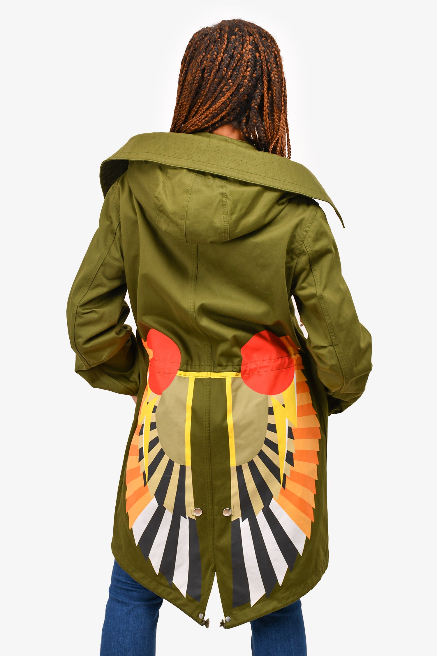 Givenchy Green Military Parka Coat with Multicolour Print Size 48 Mens