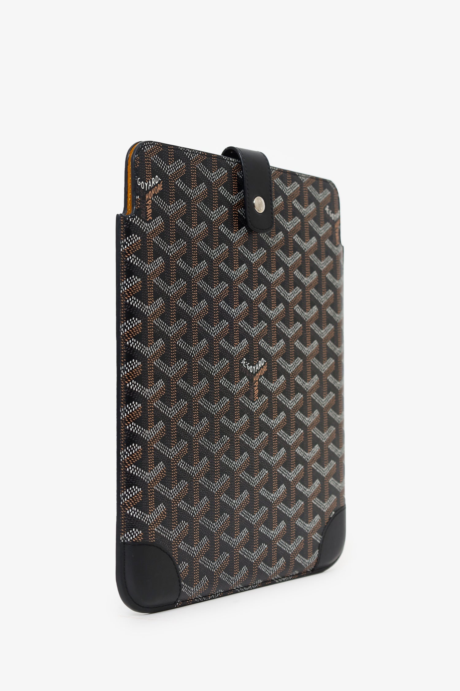 Refresh availabilityGoyard Black Goyardine Coated Canvas iPad Sleeve. Front fold-over piece with snap-button closure. Leather exterior corners. Leather-lined interior. Tonal stitching.