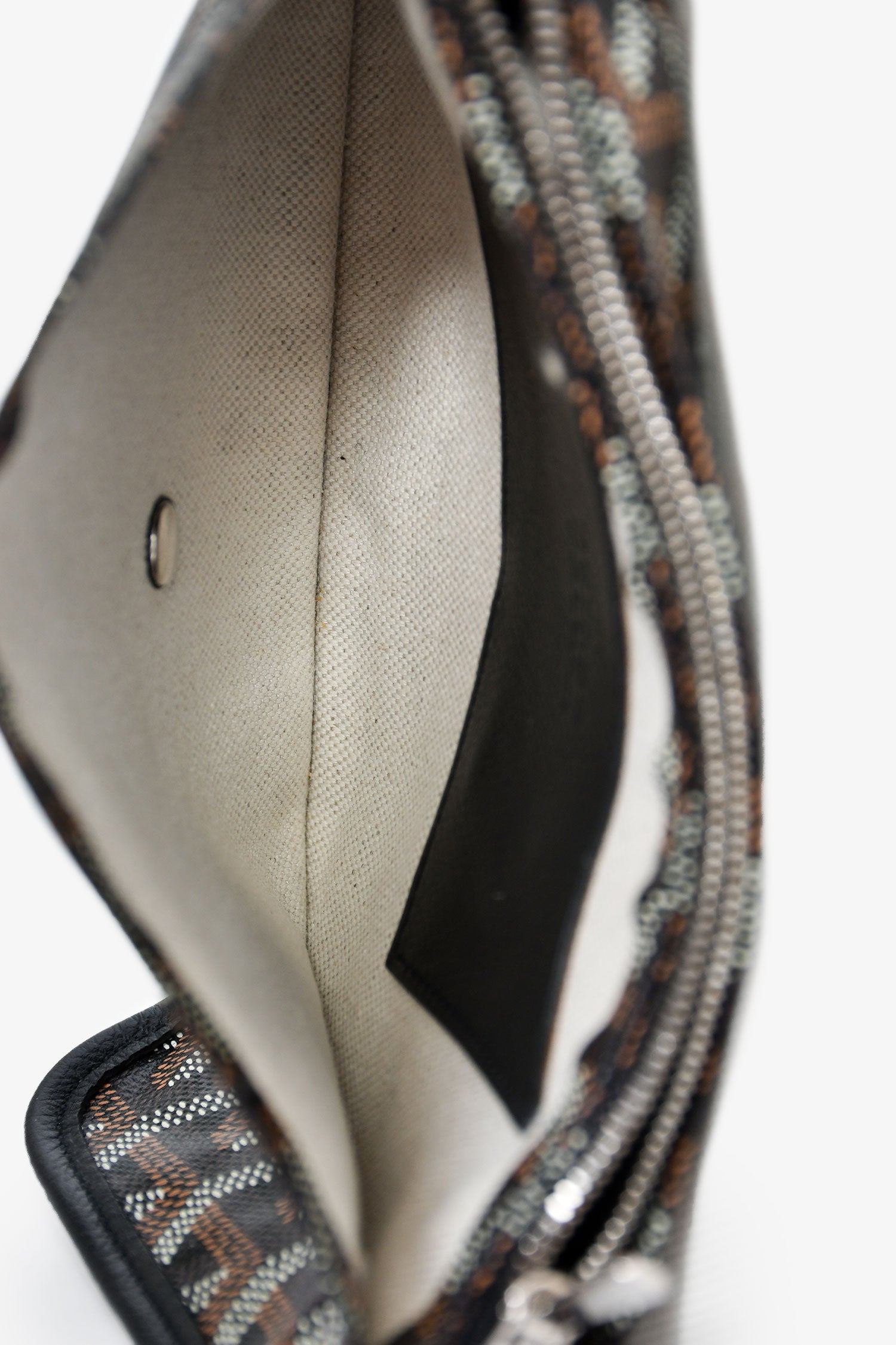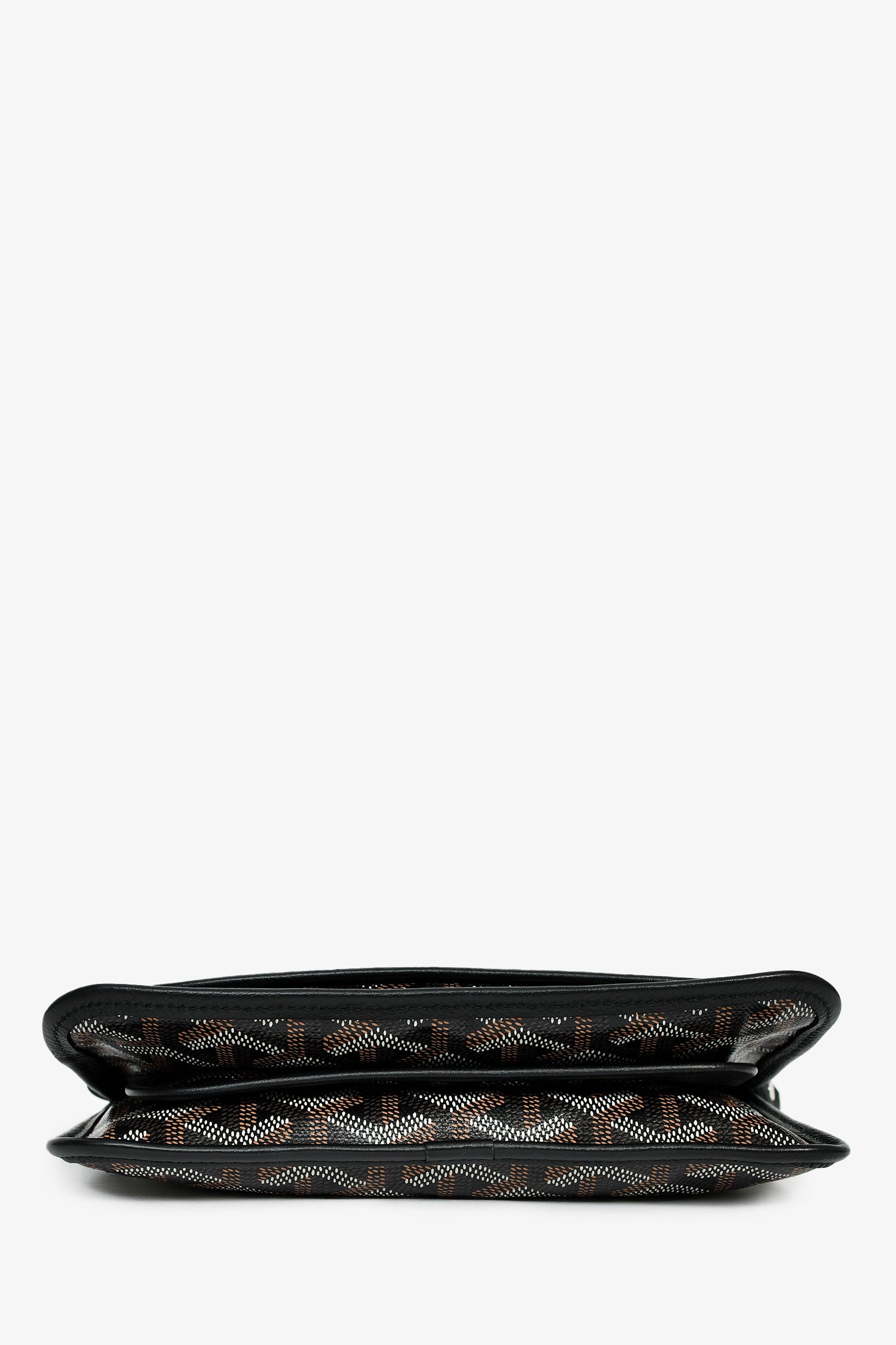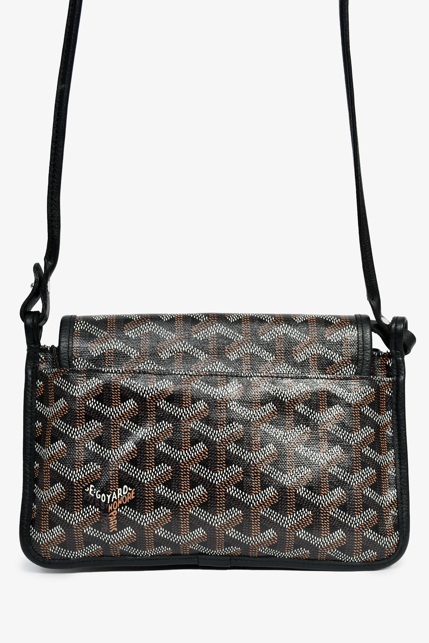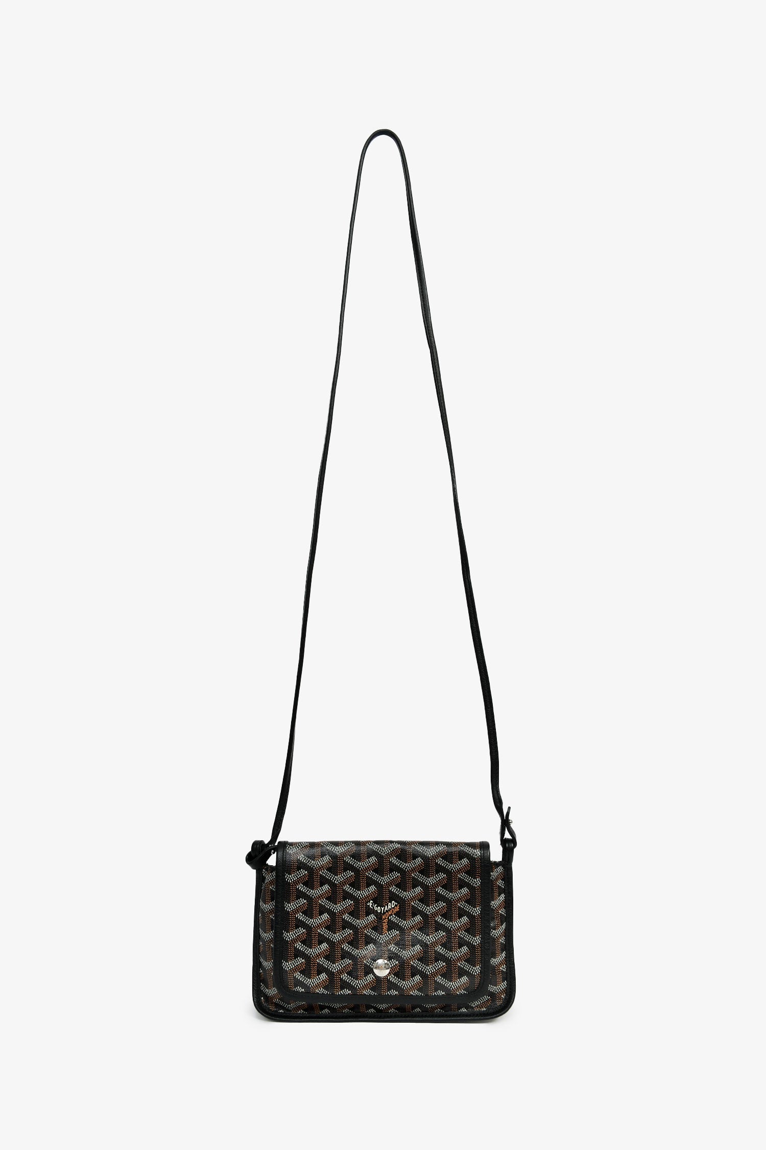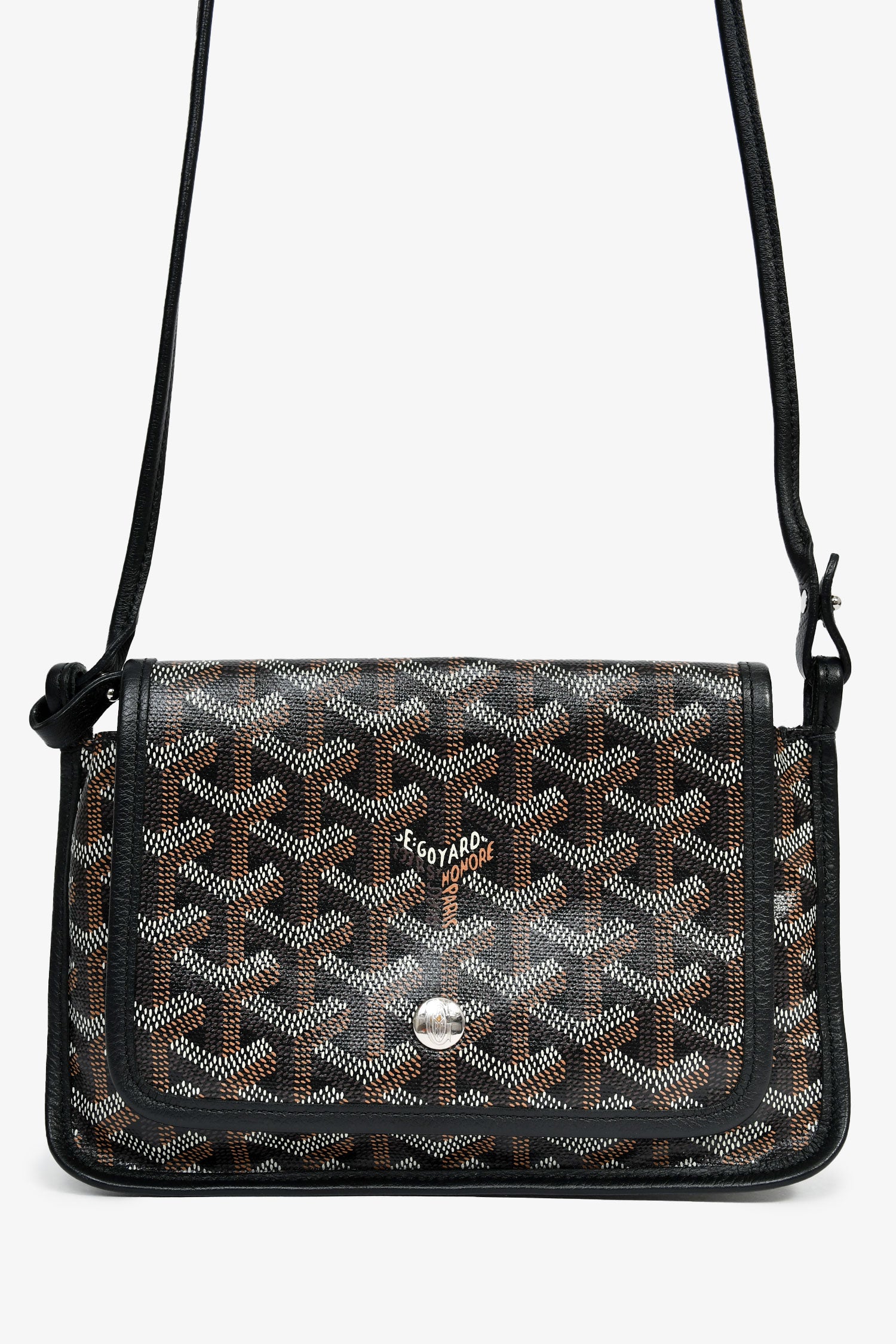 Refresh availabilityGoyard Black Goyardine Plumet Crossbody Bag. Coated canvas. 3 separate compartments. Fold-over flap with a snap closure. Silver-tone hardware. Leather trim. Single crossbody strap. 2 compartments and 1 zipped pocket. Tonal stitching.