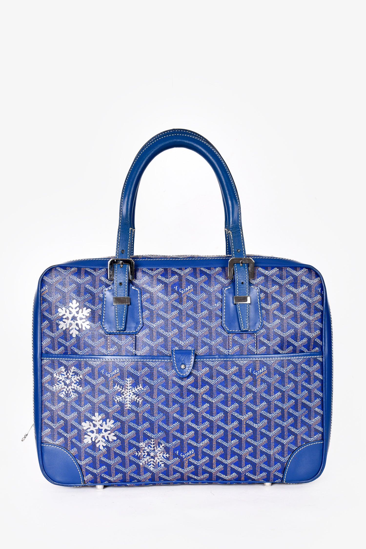 Goyard Vintage Blue Ambassade PM Briefcase With Snowflakes
